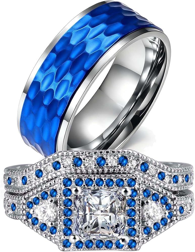 4.Suitable for Special Occasions: Our beautiful 925 sterling silver wedding engagement ring set is perfect for various special occasions. They can be used as couple rings, Valentine's Day gifts, anniversary rings, wedding sets, engagement rings, eternity rings, promise rings, or wedding bands. The women's engagement ring features a round cut stone at the center, accompanied by matching bands. The stones are AAA grade lab-created diamonds in white, renowned for their high transparency and refractivity. The rings are made from hypoallergenic 925 sterling silver jewelry, while the men's ring has a width of 8mm and thickness of 2.6mm, crafted from high-quality titanium with scratch-resistant properties.