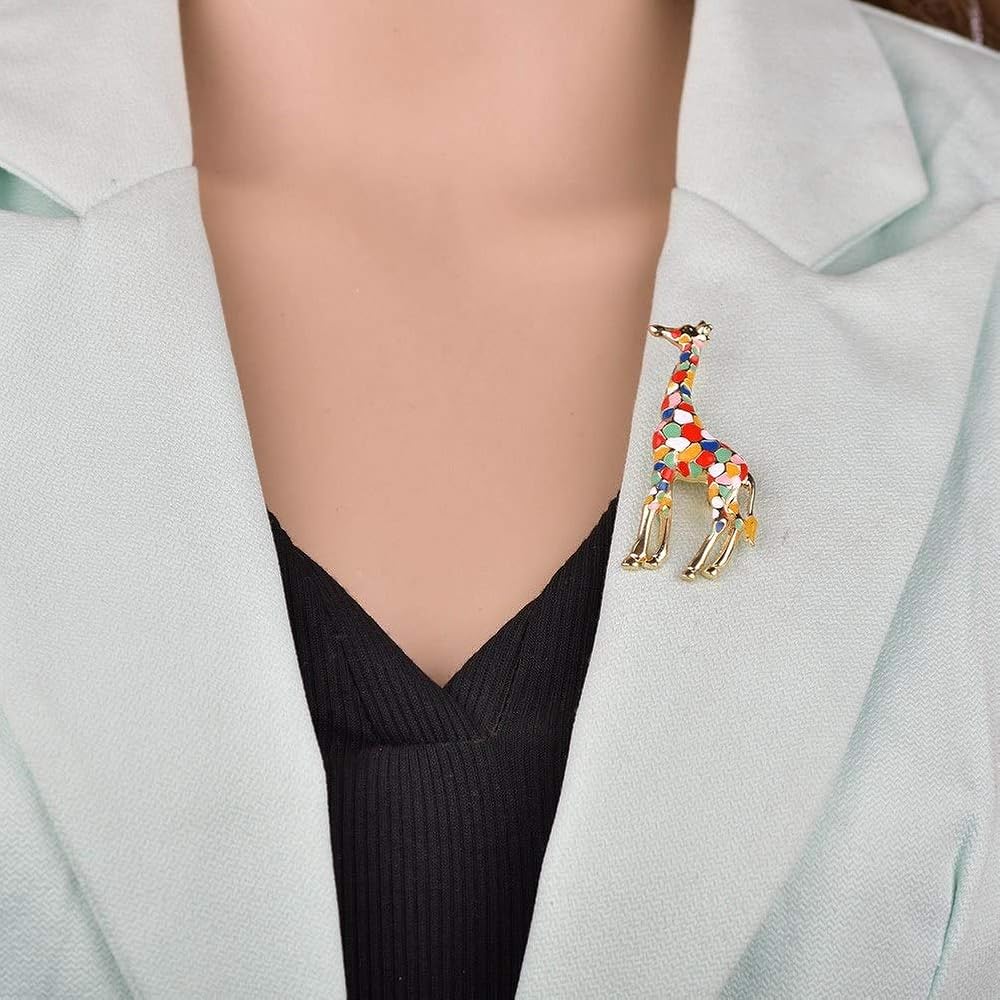 SKZKK الملونة الزرافة المينا طية صدر السترة دبوس هدية الحيوان للنساء دبابيس لطيفة مجوهرات النساء مجوهرات النساء الطلاء سبائك المحسّن