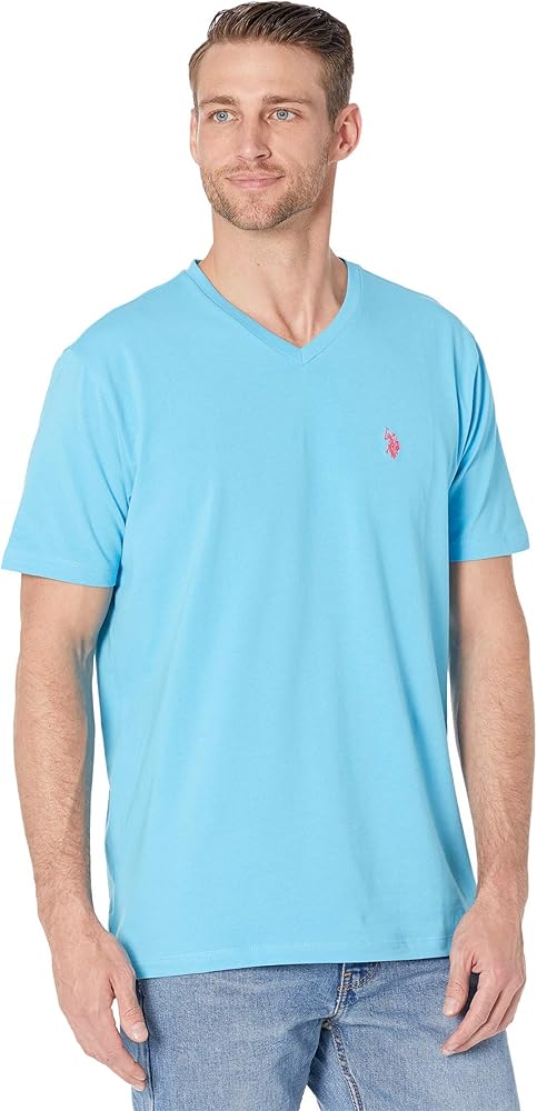A shirt that can be worn with anything, the U.S. POLO ASSN. Short Sleeve Stretch V-Neck Tee Shirt should be a staple in any closet, With short sleeves and a soft fabric, this tee can be worn with jeans, khakis, or joggers to complete a classic look. V neckline. Short sleeves. Iconic logo on upper left chest. Cotton blend for soft feel. 95% cotton, 5% spandex. Machine wash cold with like colors only, non-chlorine bleach, When needed tumble dry low, warm iron if necessary but not on embroidery or print.