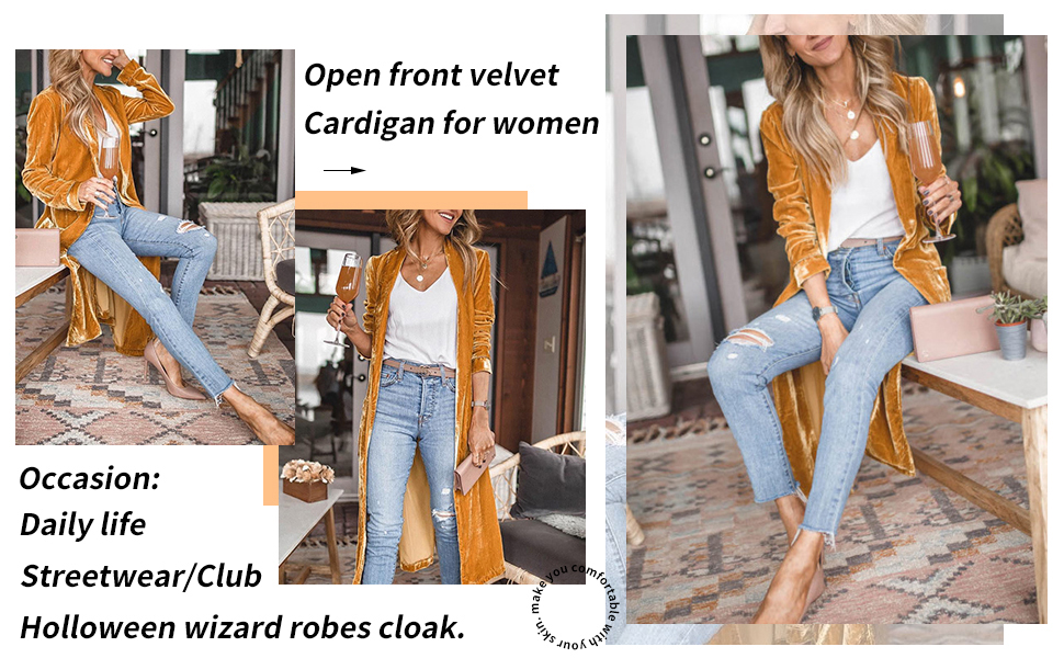 توفر السترة الطويلة المصنوعة من القطيفة المفتوحة من الأمام طريقة عدم الإغلاق مع الملابس، مما يتيح إمكانية ارتدائها مع المزيد من البلوزات. يسهل تنسيقه مع التيشيرتات والقمصان بدون أكمام والكعب العالي