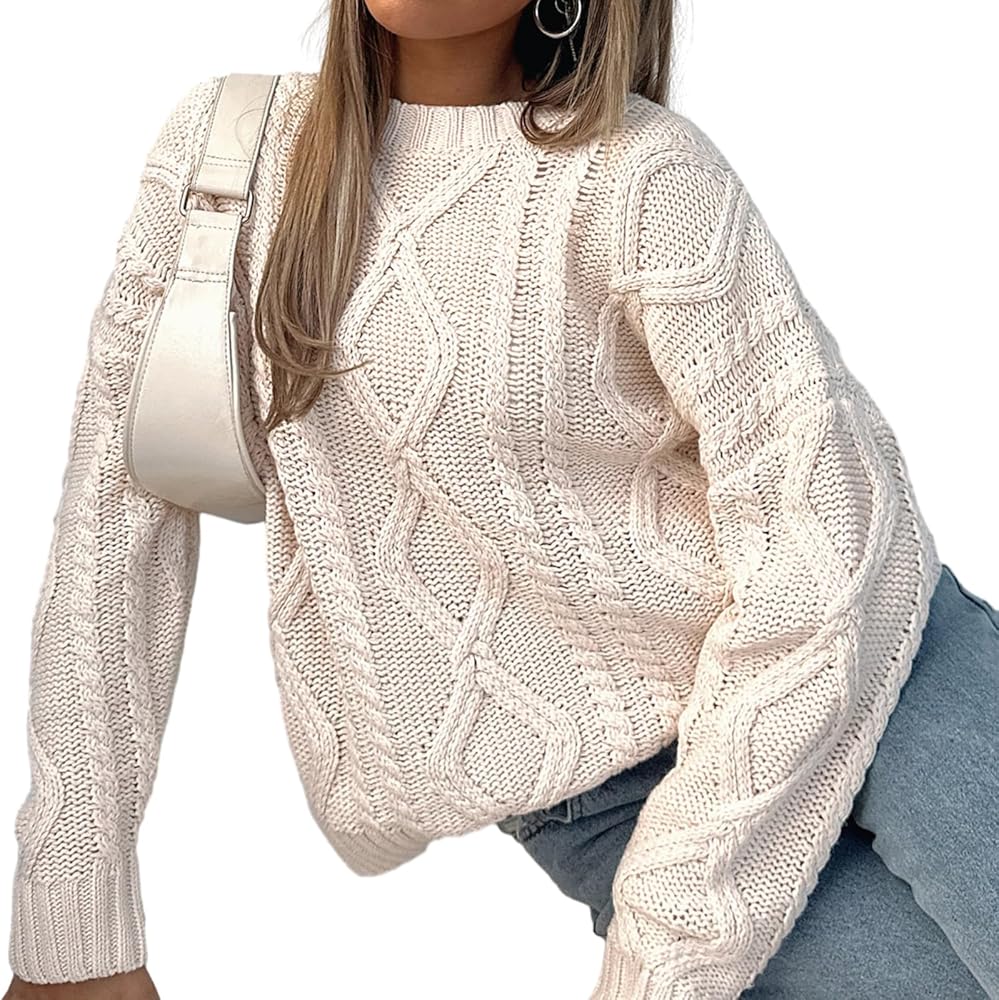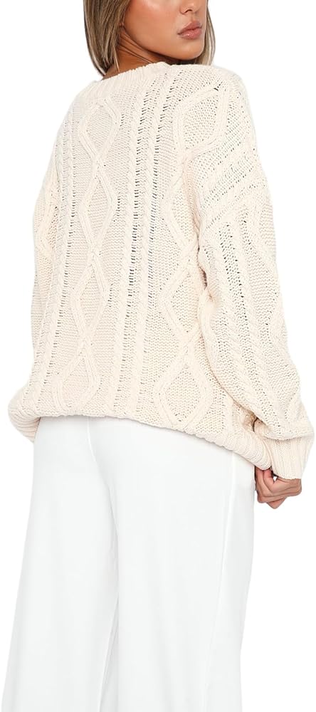 Women Oversized Cable Knit Sweater Y2K Casual Long Sleeve Pullover Sweater Vintage Aesthetic Streetwear