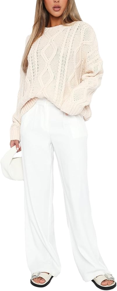 Features: Oversized sweaters for women, long sleeves, round neck, hollow out, drop shoulder, solid color, loose fit, basic length, pull-on closure. Cable knit sweater, easy to put on and take off.