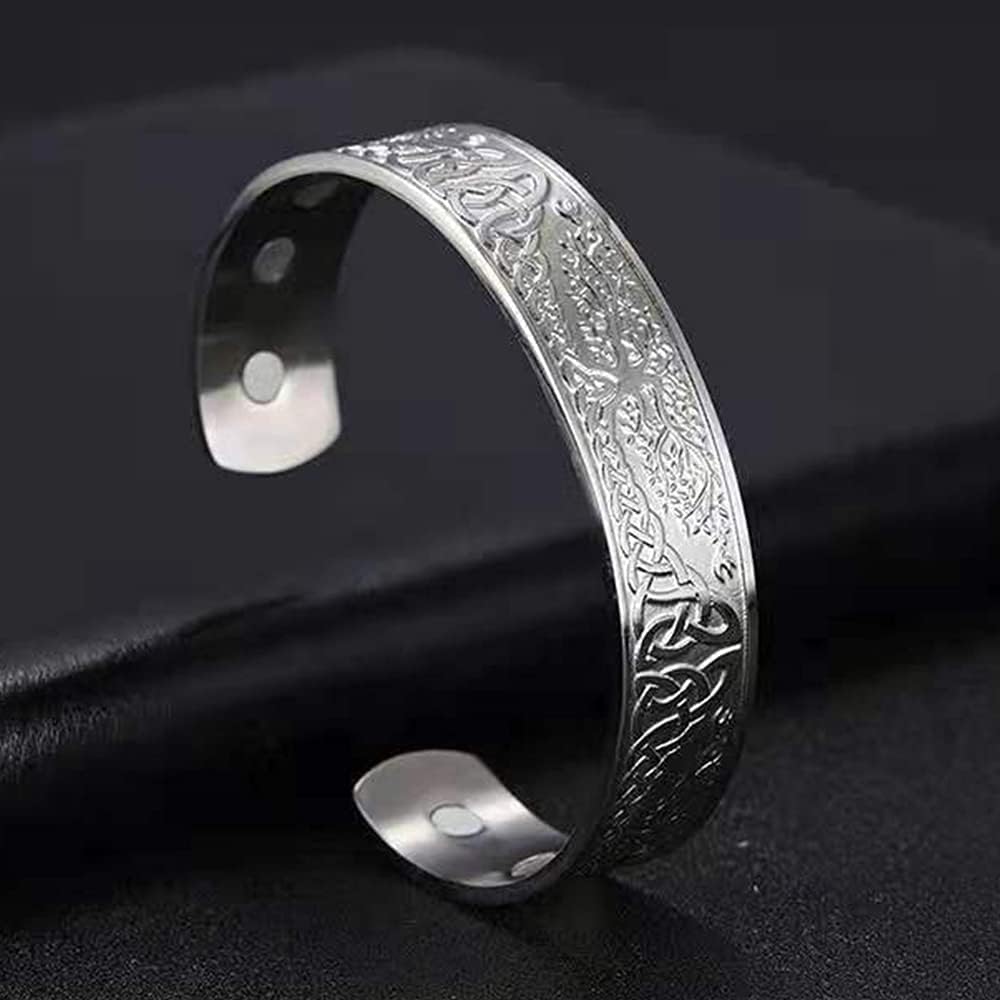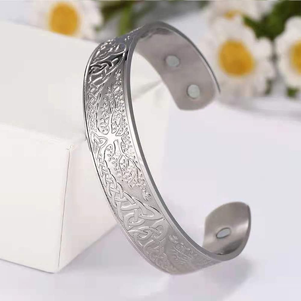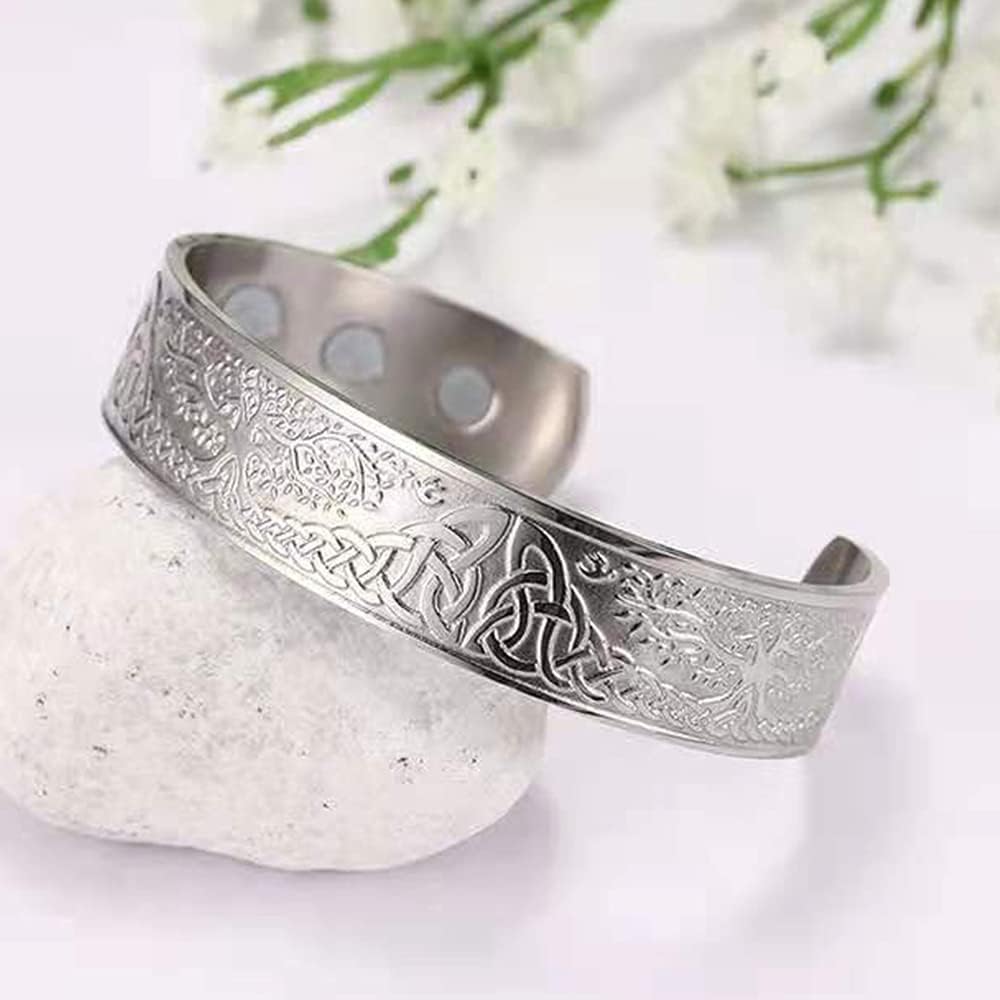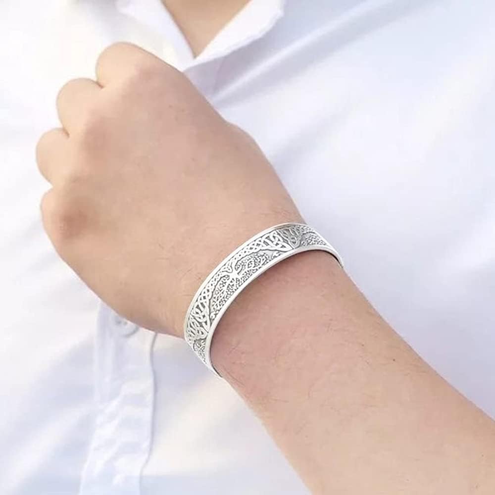 • تصميم كلاسيكي - يبلغ عرض سوار فايكينج بانجل 15 ملم وقطر 65 × 55 ملم. سوار المعصم المفتوح هذا هو سوار على شكل حرف C، وهو قابل للتعديل. اتصال سحري مثالي بين شجرة الحياة والعقدة السلتيكية.