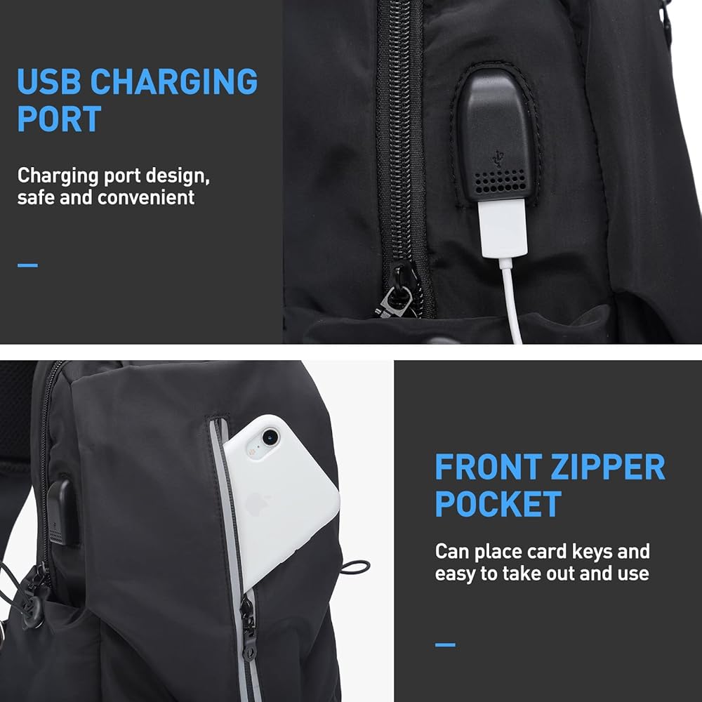 • ✅【حقيبة كتف متعددة الوظائف】تصميم منفذ شحن يو اس بي (بدون شاحن محمول)، كابل يو اس بي مدمج. استخدمها لتوصيل مصدر الطاقة التلقائي، ثم قم بتوصيل الهاتف بمنفذ يو اس بي باستخدام كابل يو اس بي، يمكنك شحن الهاتف بسهولة. يحتوي حزام الكتف على حقيبة هاتف محمول وفتحة سماعة أذن، مما يسمح لك بالاستماع إلى الموسيقى بأناقة أثناء المشي. يوجد أسفل حقيبة الهاتف المحمول، توجد فتحة يمكن استخدامها لحمل النظارات الشمسية.