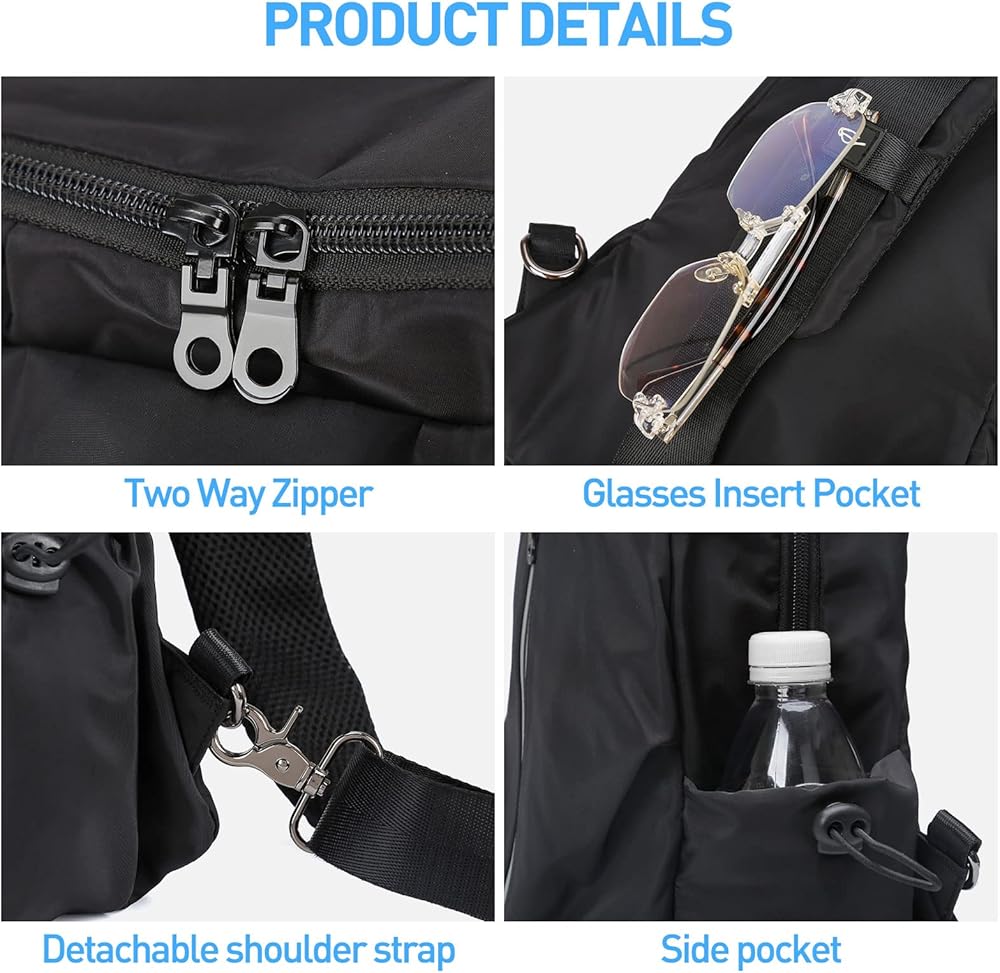 • ✅【خفيفة الوزن ومقاومة للماء】حقيبة الكتف للرجال والنساء مصنوعة من مادة النايلون عالية الجودة والمقاومة للماء. صناعة ممتازة تظهر مزاجك المميز. حقيبة كتف خفيفة الوزن للنساء والرجال توضع بشكل جيد على ظهرك/صدرك ولا تكون مكتنزةً أو مكتنزةً على إطار الجسم. إذا اتسخت حقيبة الكتف للنساء والرجال، فيمكنك مسحها فقط وتبقى نظيفة.