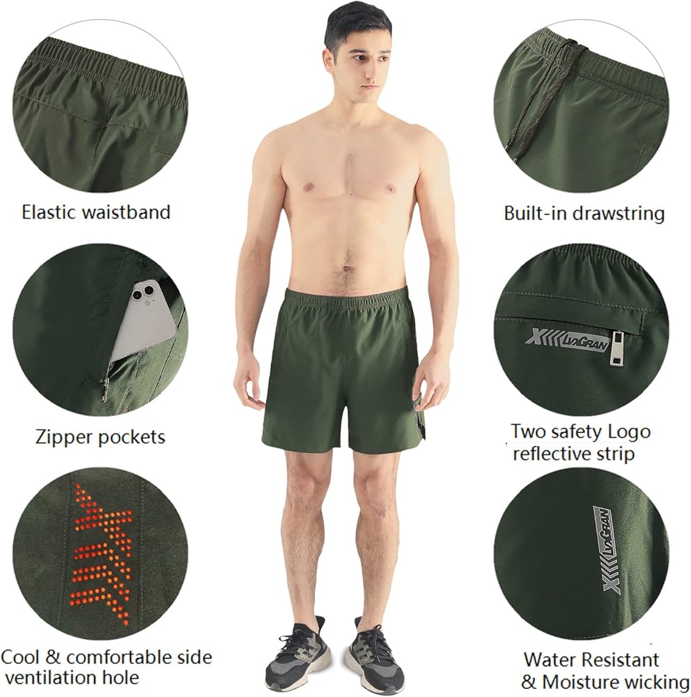 شورت الجري الرياضي LVXGRAN غير مبطن، ورباط مدمج لسهولة التعديل للحصول على ملاءمة جيدة. توجد 3 جيوب غير مرئية بسحاب عميقة بما يكفي لمنع العناصر من السقوط أثناء التمرين، وفتحات جانبية عند الحاشية على كلا الجانبين لزيادة الحركة عبر الخط. شريطان عاكسان رائعان في الأمام والخلف، يسمحان لك بالجري في ظروف الإضاءة المنخفضة لتحسين السلامة.
