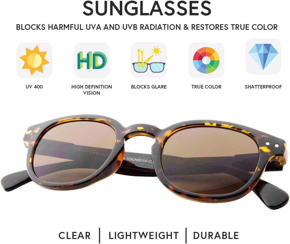 حماية من الأشعة فوق البنفسجية 400 - عدسات VITENZI ذات تصنيف 400 للأشعة فوق البنفسجية تحجب 100% من الأشعة فوق البنفسجية فئة A والأشعة فوق البنفسجية فئة B. تعتبر النظارات ذات التصنيف UV400 ضرورية لحماية عينيك من أضرار الأشعة فوق البنفسجية
