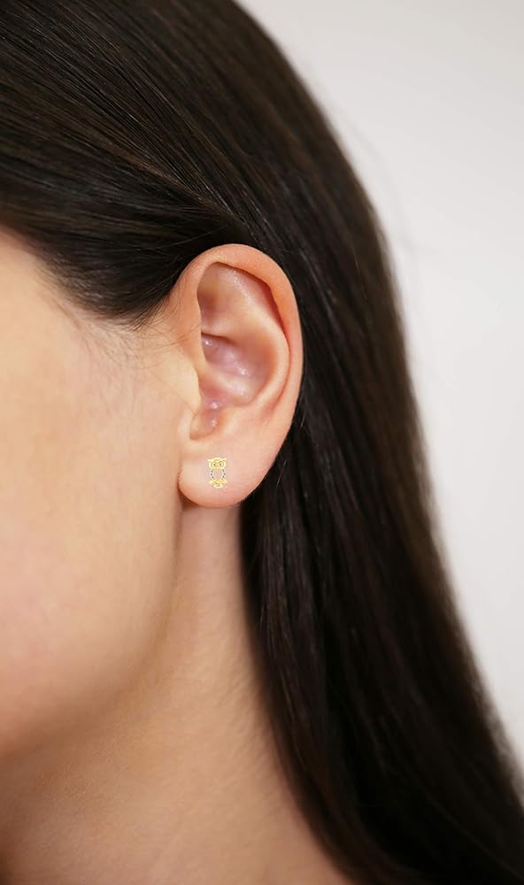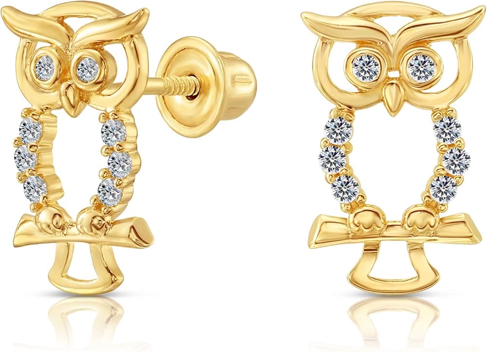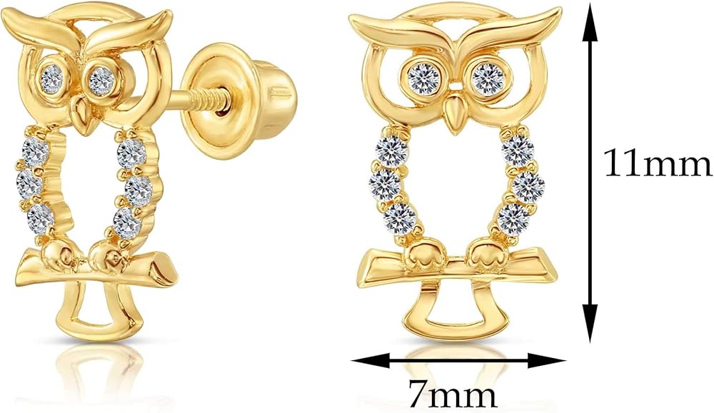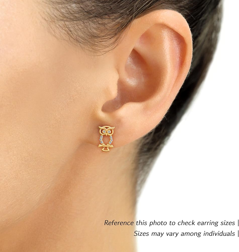أقراط مرصعة بومة صغيرة من الذهب الأصفر عيار 10 قيراط ومرصعة بأحجار الزركونيا المكعبة مع براغي خلفية