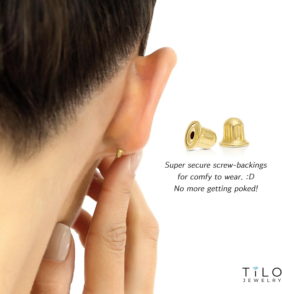 حجم القرط: 7 ملم (عرض) × 11 ملم (ارتفاع) الإغلاق: 10 قيراط ذهب برغي خلفي