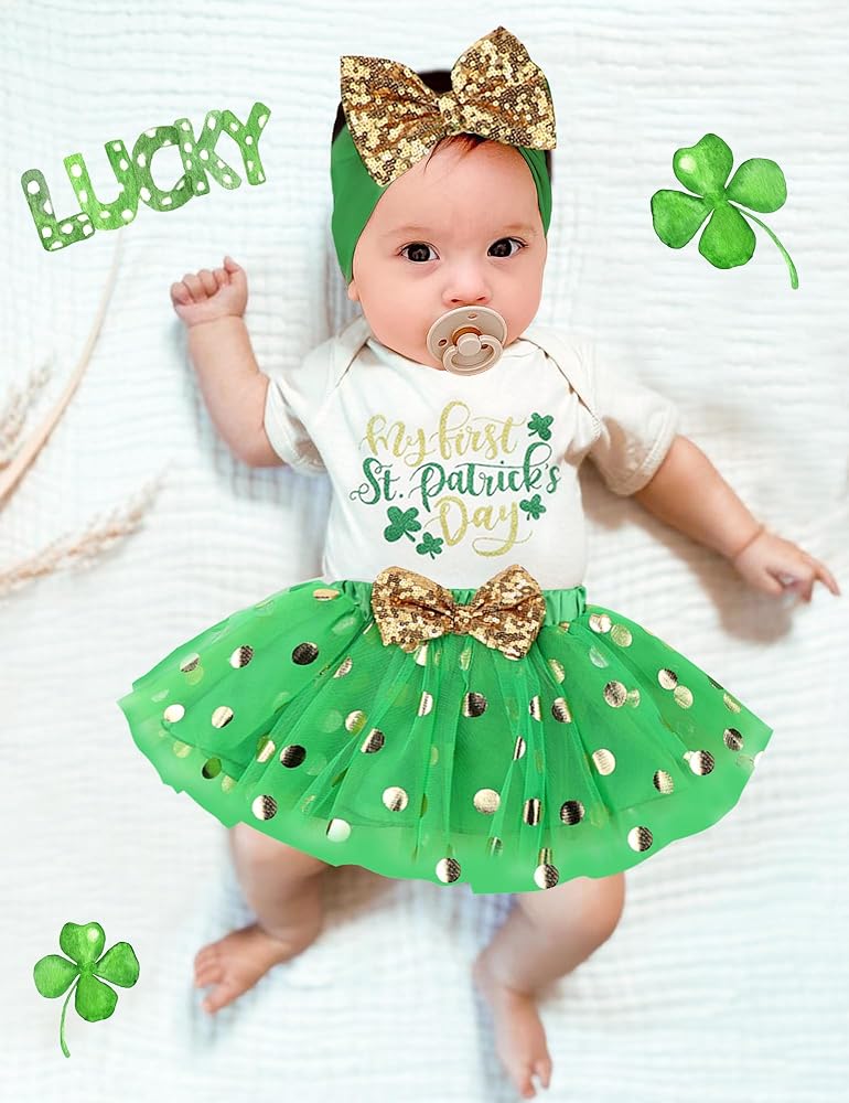 🍀 مشهد مناسب: هذا الزي مثالي لتزيين طفلتك الصغيرة لاحتفالات عيد القديس باتريك. سواء كنت تحضر تجمعًا عائليًا، أو موكبًا، أو ببساطة تحتفل في المنزل، فإنها ستجعل طفلك الصغير يبدو ساحرًا واحتفاليًا.