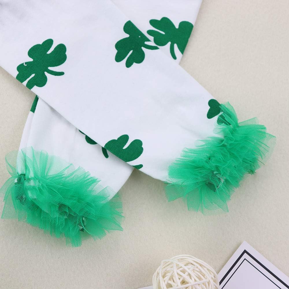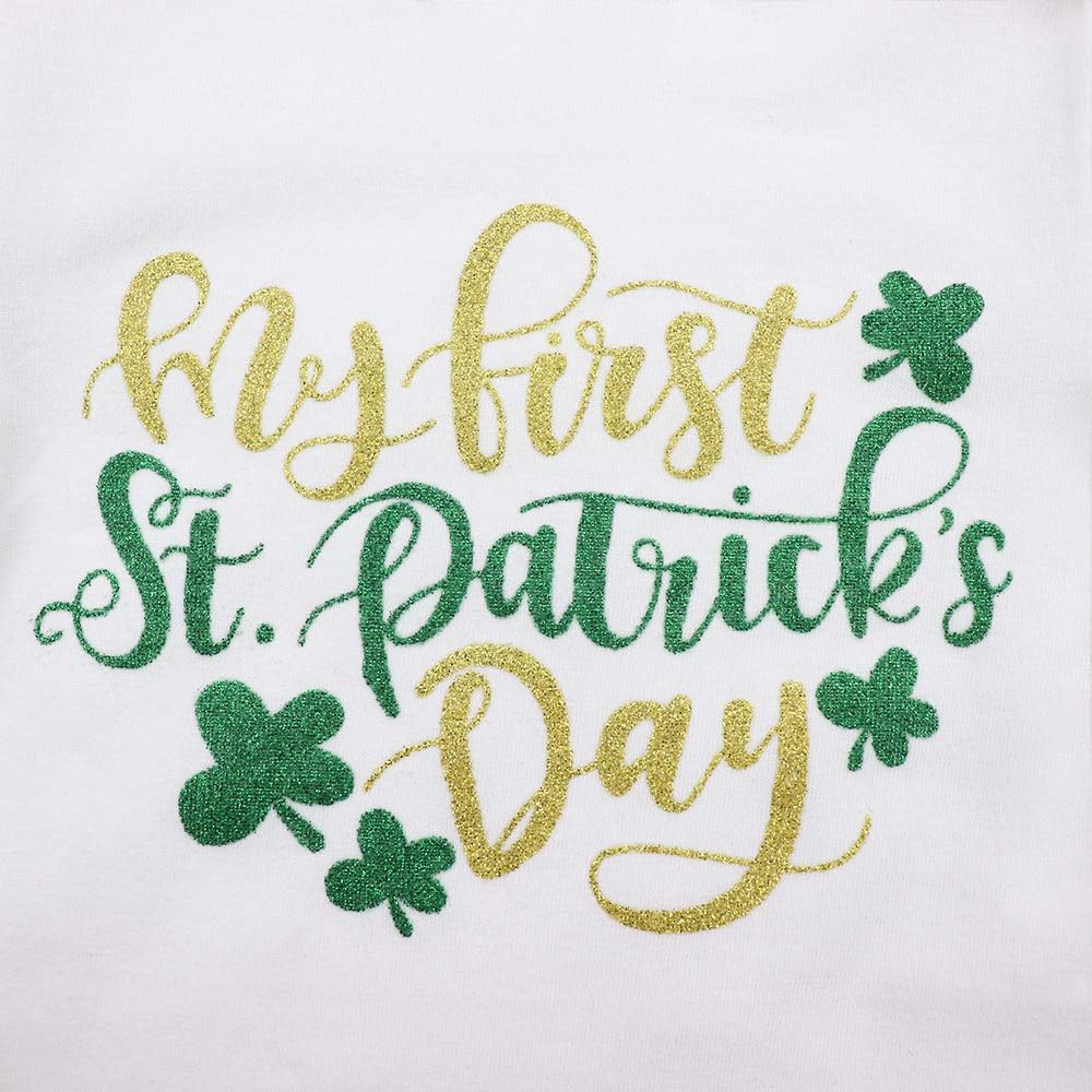 🍀 التصميم: يتميز رومبير الفتيات الصغيرات في عيد القديس باتريك بعبارة رائعة "My First St Patricks Day" بأحرف خضراء، مما يضيف لمسة احتفالية. تتميز الجوارب الطويلة بنمط البرسيم المحظوظ، الذي يتوافق مع التنورة الخضراء للحصول على مظهر أكثر احتفالية.