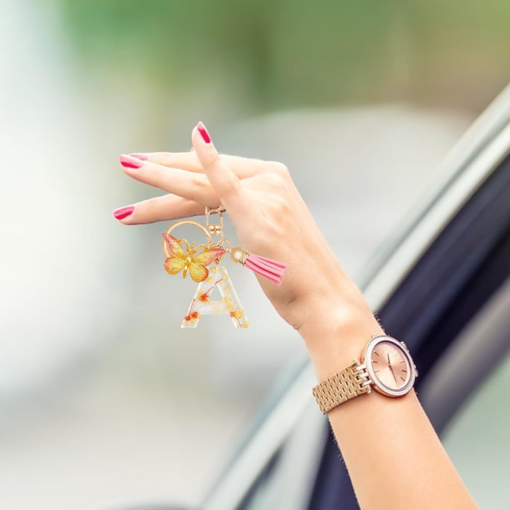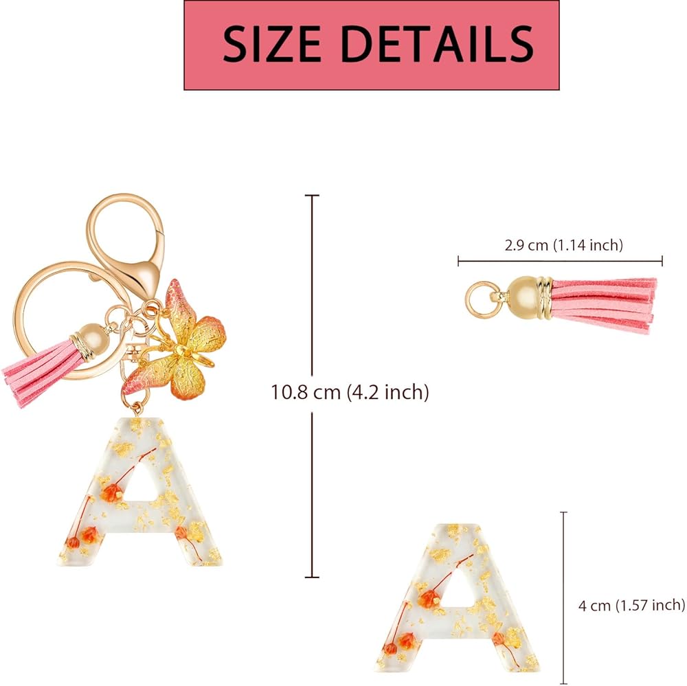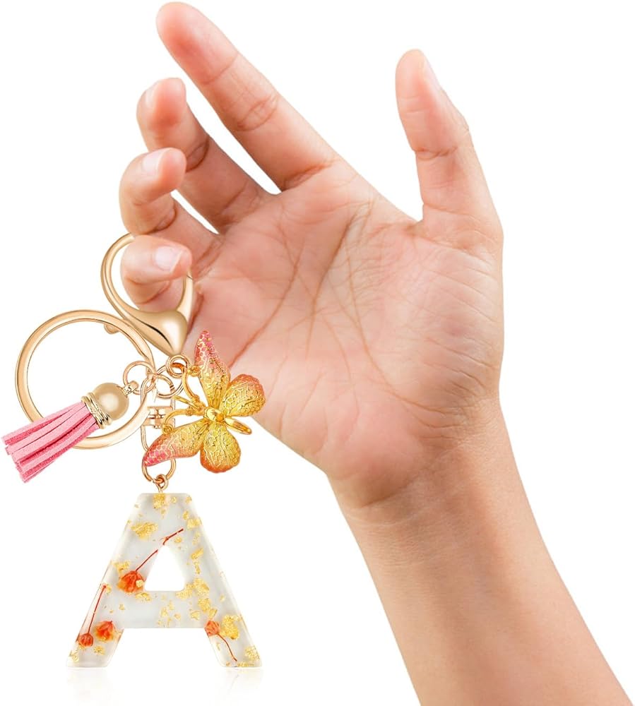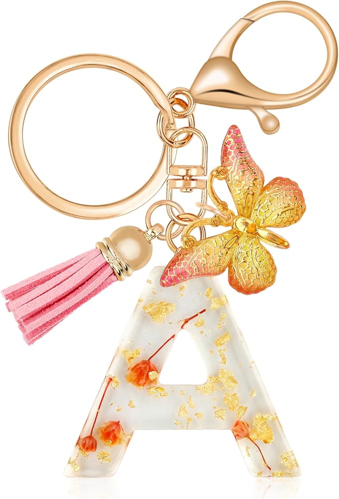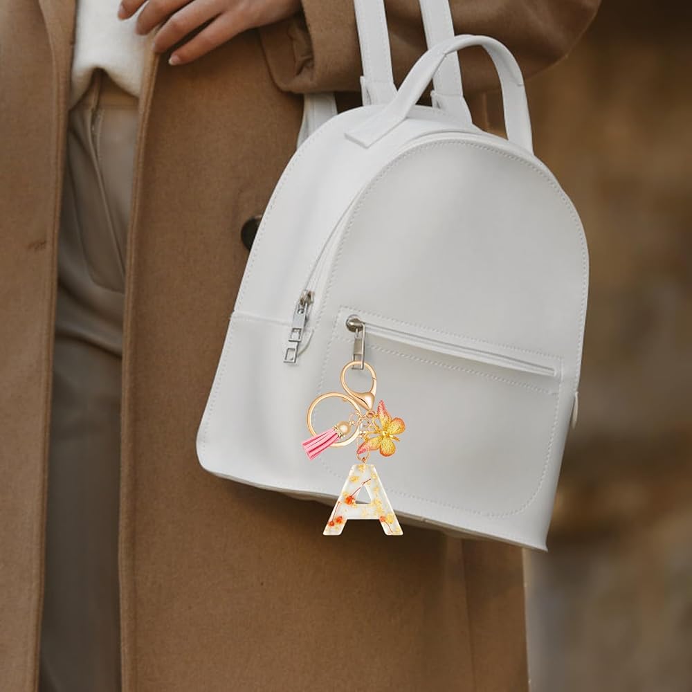 ✨【أنيقة دائمًا】- سلاسل المفاتيح الأبجدية المصنوعة يدويًا مع زهور من رقائق الذهب أنيقة ولطيفة، وهي إضافة مثالية لحقيبة الظهر. هدية مفاجئة للأم أو الابنة أو الحفيدة، لن يتغير الاسم أبدًا، لذا لن تخرج سلاسل المفاتيح هذه عن الموضة أبدًا.