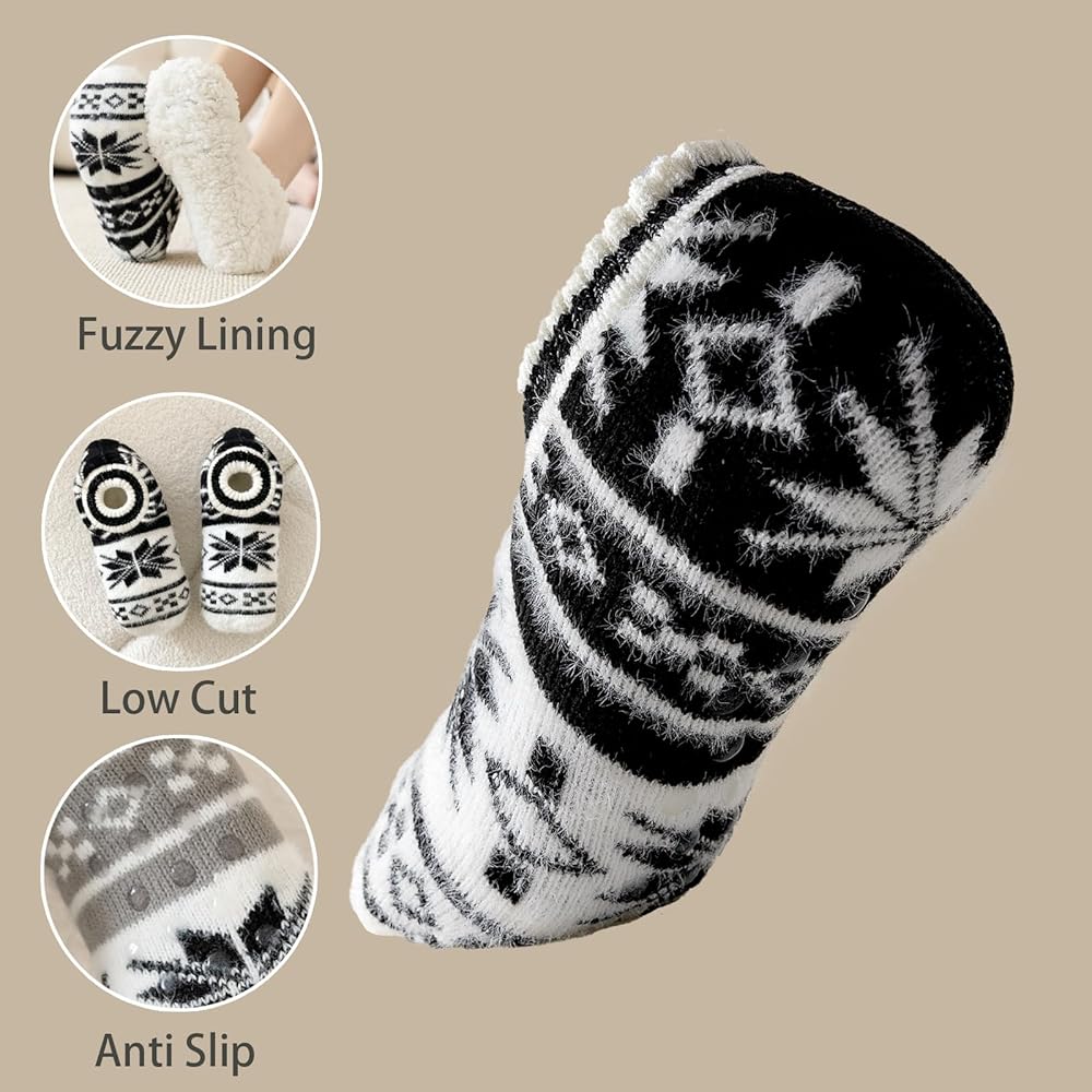 Thick slipper socks keep your feet warm for the winter months. Enjoy cozy, warm and fuzzy winter days.