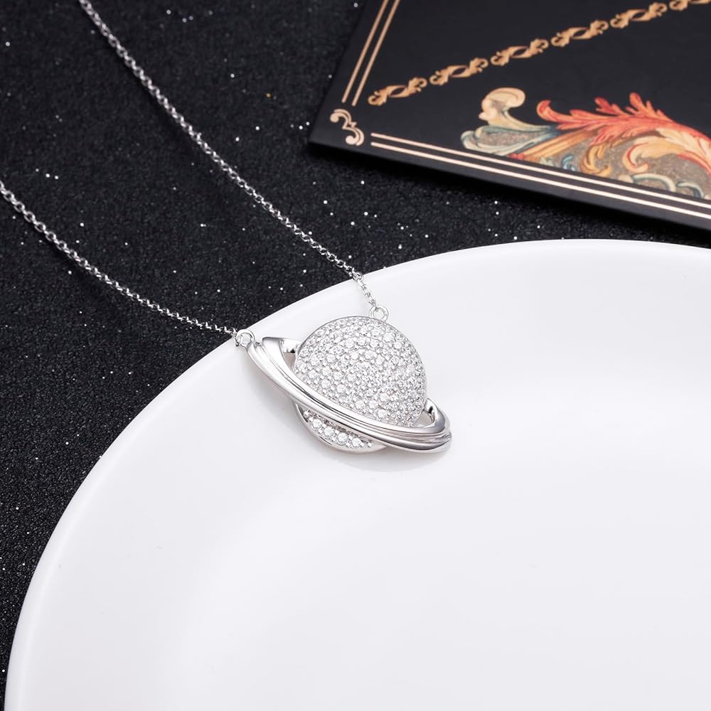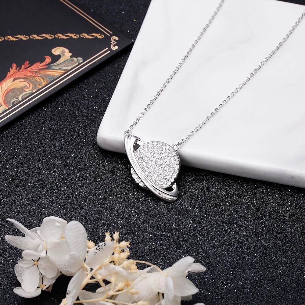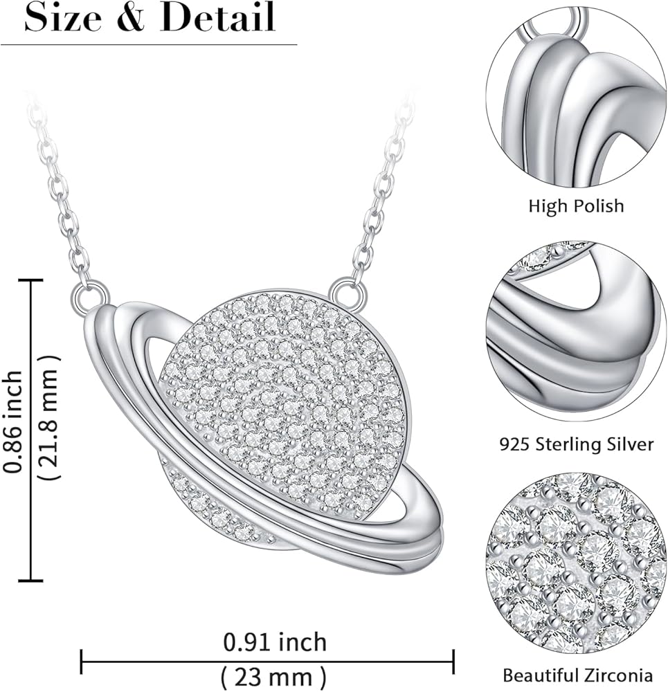 • ❤مادة لا تسبب الحساسية: قلادة ساتورن مصنوعة من الفضة الإسترلينية 952 عالية الجودة، خالية من الرصاص والنيكل، دون تغير اللون. لا تقلق بشأن القلادة التي تهيج رقبتك.