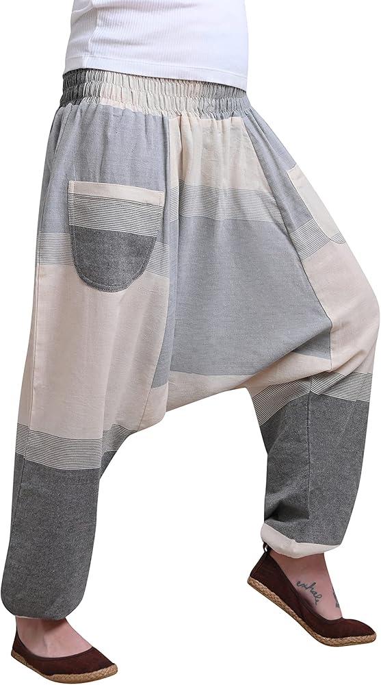 المقاس والألوان: السراويل الفضفاضة والسراويل الفضفاضة باللون البيج متوفرة بمقاسات S-M وL-XL وXXL باللون البيج والرمادي والمرقعة. تعتبر الأصباغ عالية الجودة وطويلة الأمد هي السمات الرئيسية لسراويل الفيل لدينا، وسراويل المظلة للنساء والسراويل النسائية البيج.