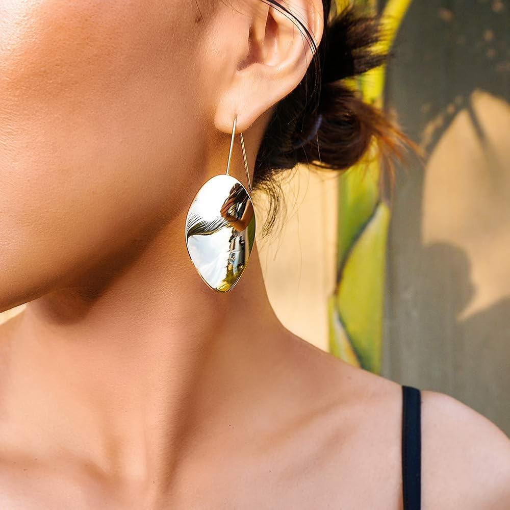 المقاس المناسب - يبلغ ارتفاع هذه الأقراط الورقية 59 ملم، والوزن 13.15 غرام، وهو خفيف الوزن ومناسب في الطول. لن تكون ثقيلة أو ضخمة جدًا بالنسبة لك.