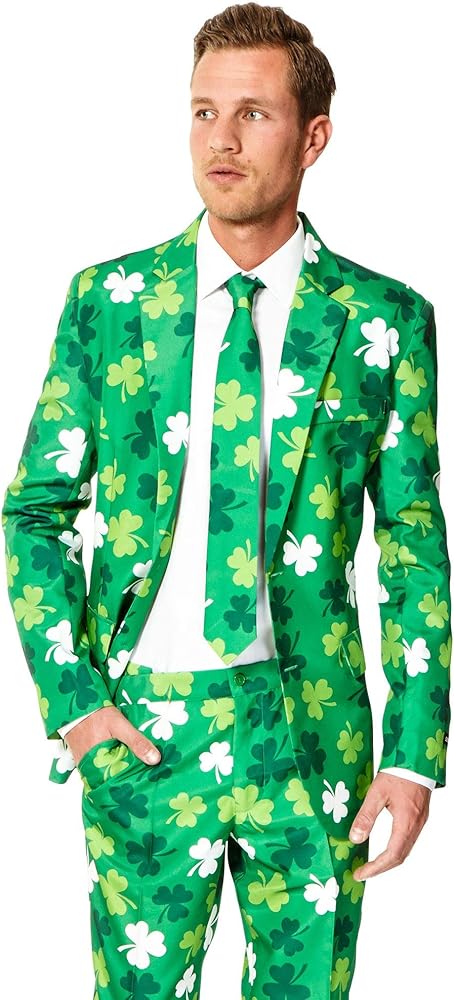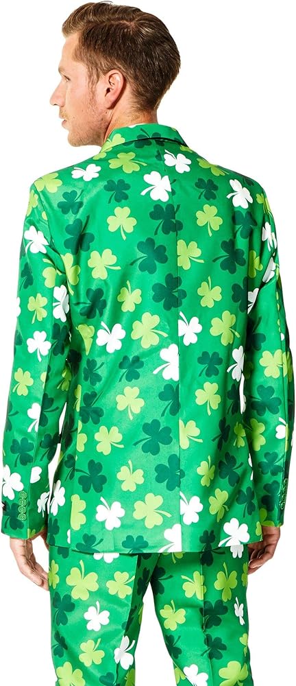 Every year on St. Patrick's Day cities turn green, beer flows like wine, and the world is a little bit Irish. Just put a St. Patrick's Day suit on your shoulders and let the Irish magic happen. With this Irish suit, anything is possible!