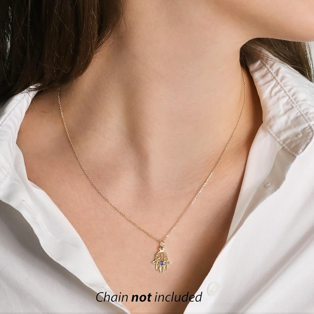 This stunning 14k Yellow Gold Natural Sapphire 2.5mm Hamsa / Hand of Fatima Pendant is the perfect way to add a touch of elegance and sophistication to any look. Made from the highest quality materials, this stunning piece of jewellery is sure to become a treasured heirloom.