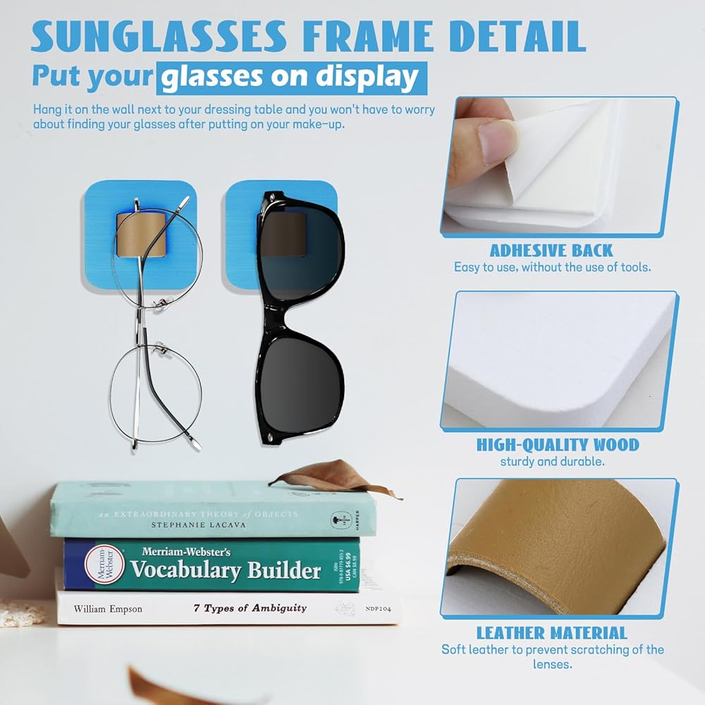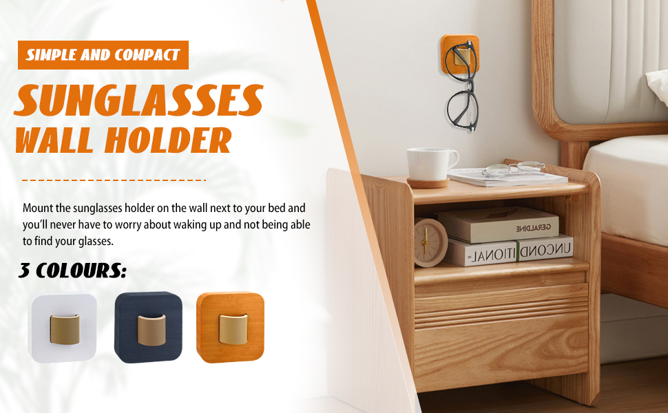 • ☀ 【خامة عالية الجودة】مصنوع من مادة خشبية عالية الجودة مع حزام جلدي، منظم النظارات الشمسية هذا أنيق ومتين، ويمكن أن يساعد في القضاء على الفوضى المكتبية. منظمات النظارات متوفرة بثلاثة ألوان، خشب طبيعي، أبيض وأسود، ويوجد دائمًا لون يناسب نمط حائط منزلك.