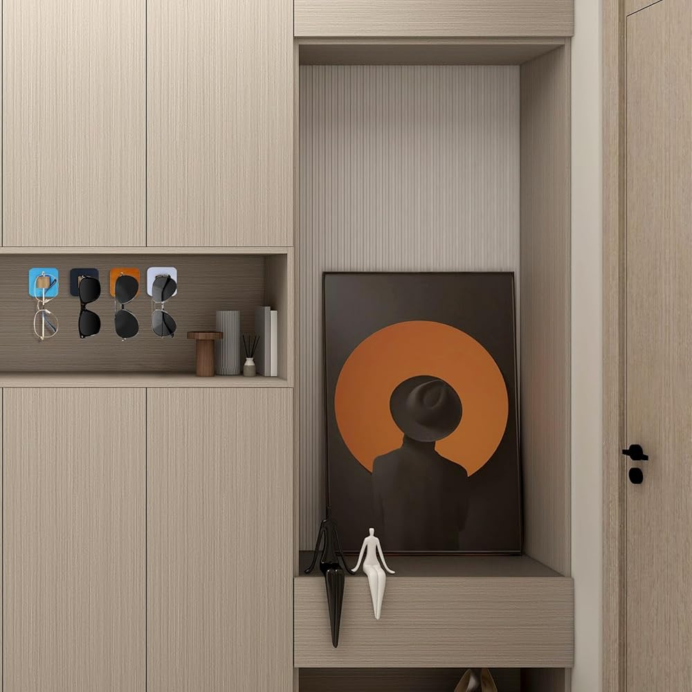 • ☀ 【لا يوجد تركيب للثقب】لا يتطلب أي ثقب. رف النظارات الشمسية سهل التركيب، فقط قم بإزالة اللاصق من الخلف، ويمكنك تركيبه بسهولة في أي مكان تريده. لا تقلق بشأن سقوط حامل النظارات لأنه يتمتع بقدرة تحمل جيدة.