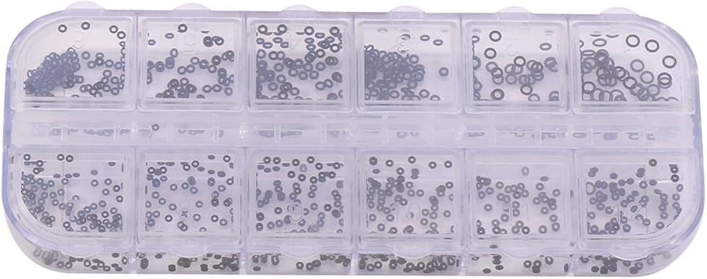 【12 حجرة】: يتم وضع هذه الحلقات على شكل حرف O في 12 حجرة وفقًا لأحجام مختلفة ويمكنك العثور على الحجم الذي تحتاجه بسهولة وسرعة، مما سيساعدك على توفير الوقت عند وضعها واستبدالها.