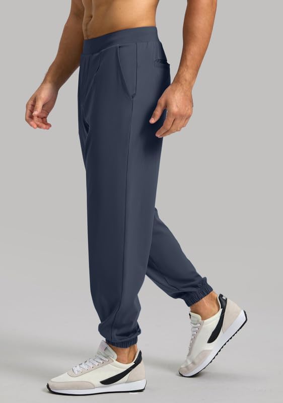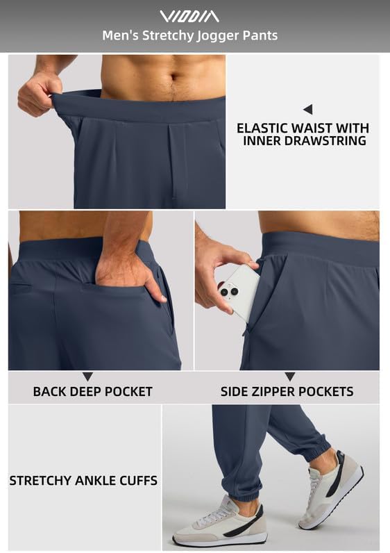 فيوديا سروال رياضي للرجال مع جيب بسحاب، سروال رياضي قابل للتمدد بقصة ضيقة للرجال للجري والتمارين الرياضية