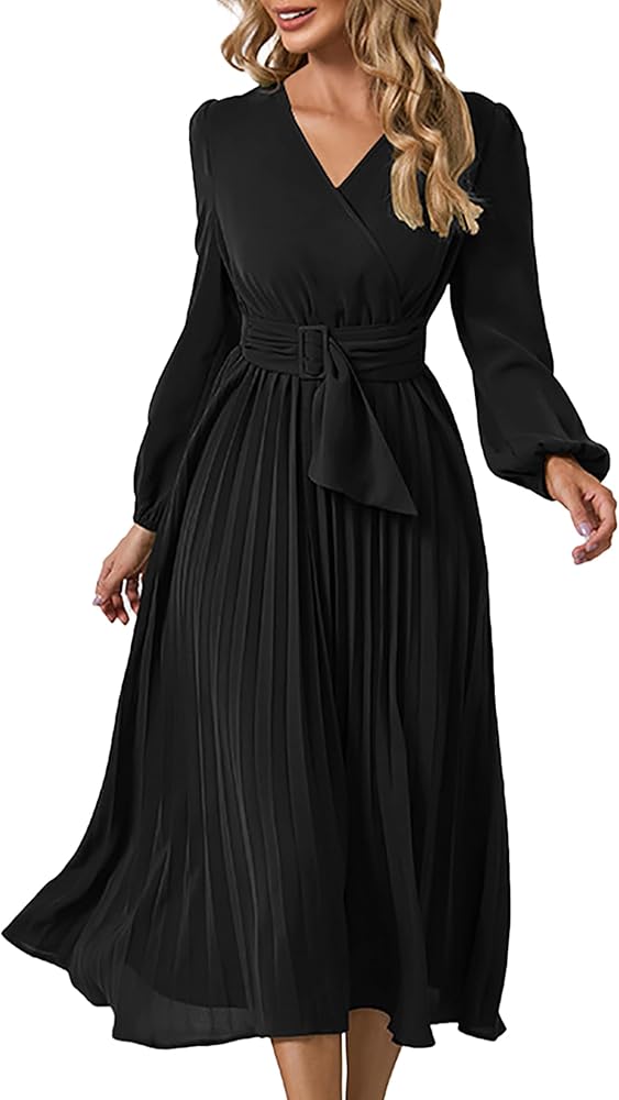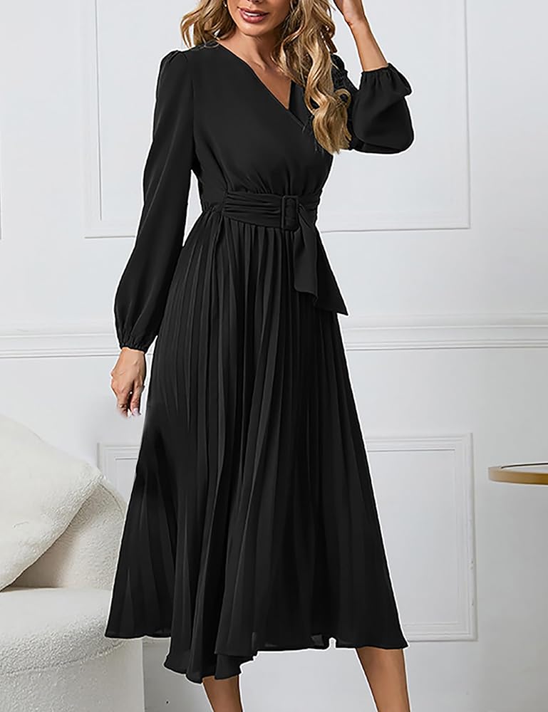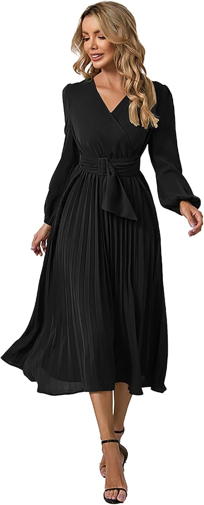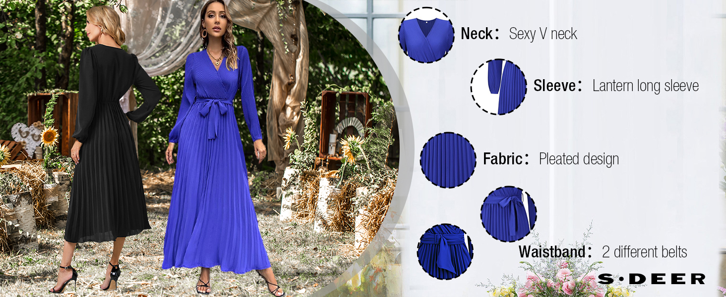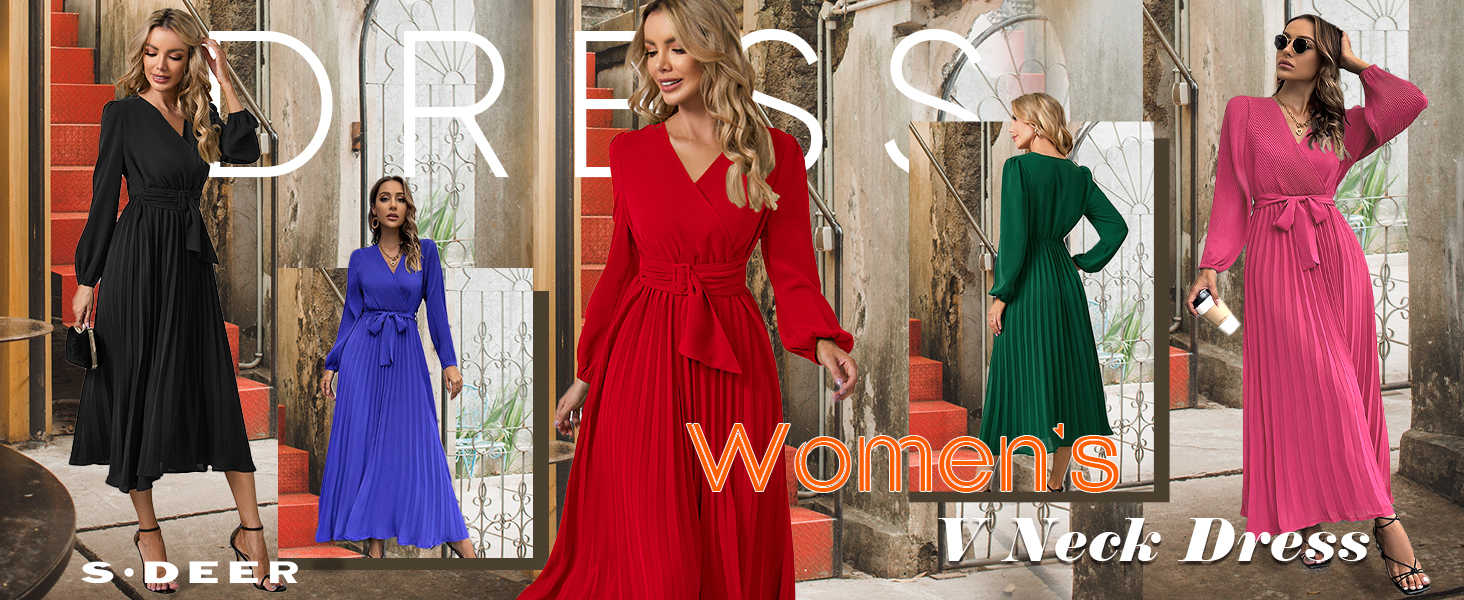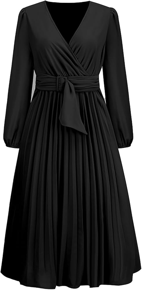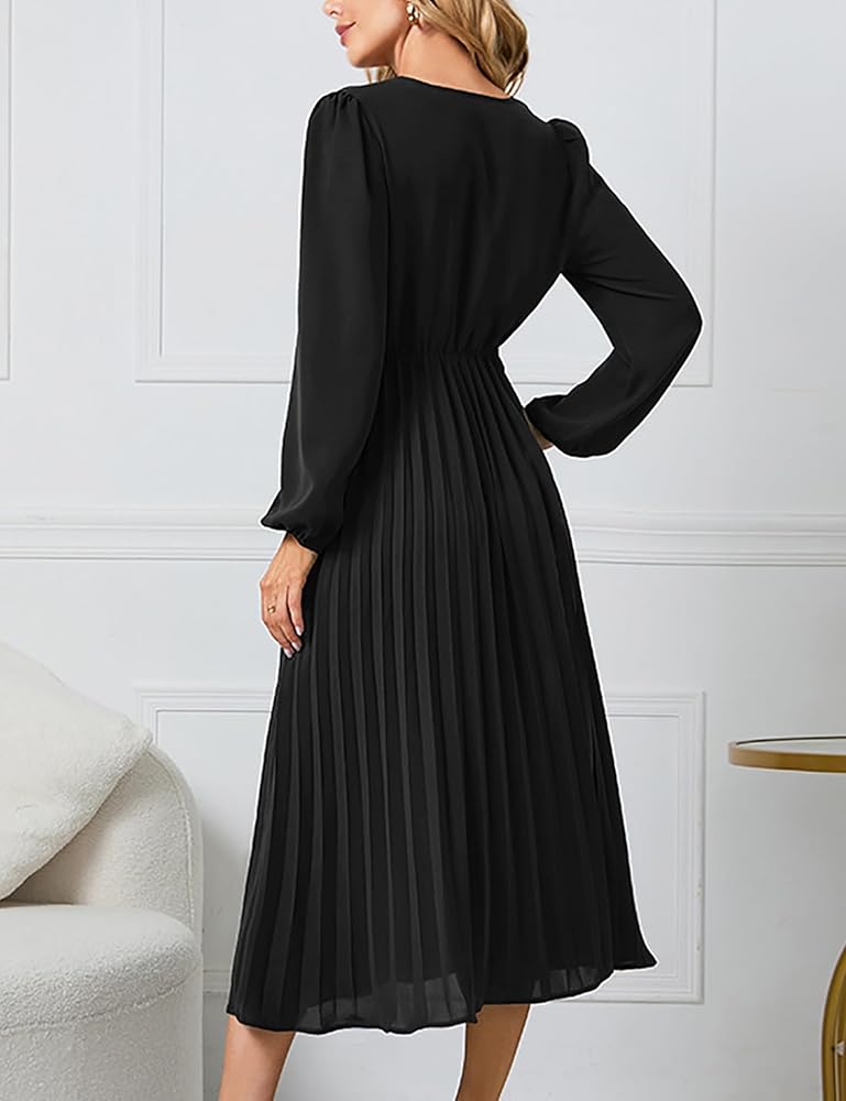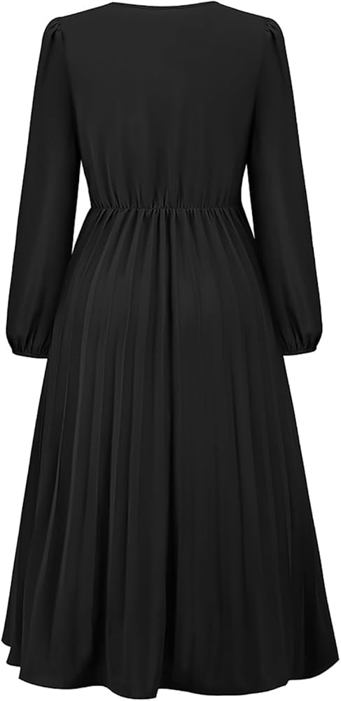 ✦الخامة: فستان ايه لاين بكسرات بقبة V للنساء مصنوع من مادة البوليستر الناعمة والناعمة وخفيفة الوزن، وهو أنيق ورسمية مع تصميم بكسرات، رقبة على شكل حرف V، طول متوسط، قصة ضيقة وتصميم أكثر تميزًا.
