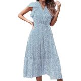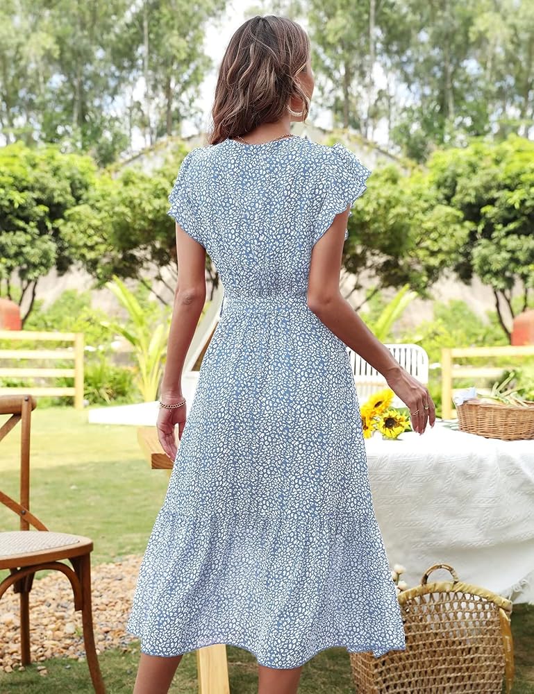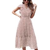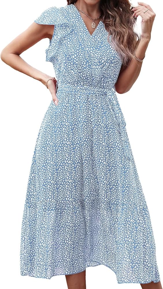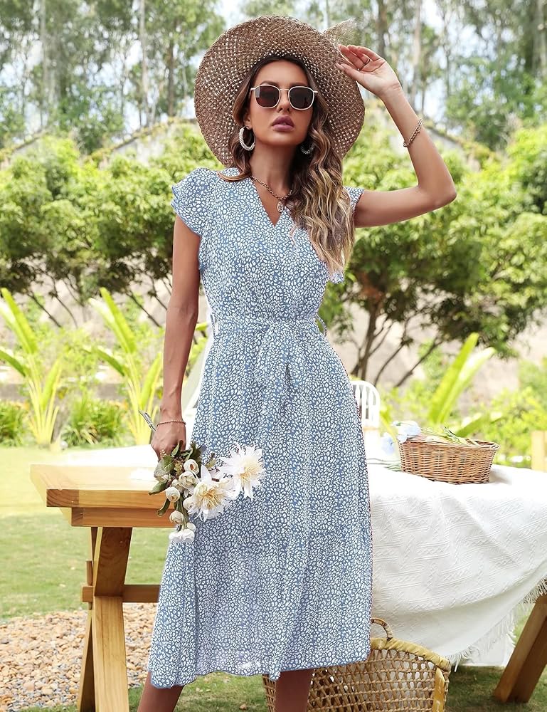 السمات: فساتين طويلة ملفوفة برقبة على شكل حرف V مع مشبك عند الياقة، قبعة مكشكشة لطيفة بدون أكمام، طباعة منقطة، حزام قابل للتعديل، حاشية مطوية، تنورة مبطنة، لون سادة بسيط، خصر مرن عالي، مقاس فضفاض، فستان على شكل حرف A، فستان شاطئ متوسط الطول بالزهور فستان، فستان صيفي طويل