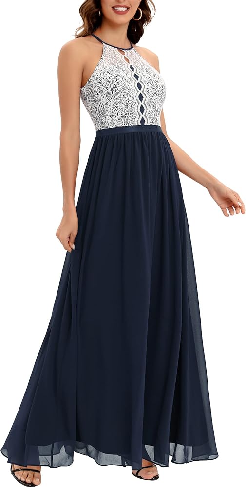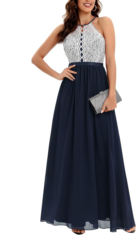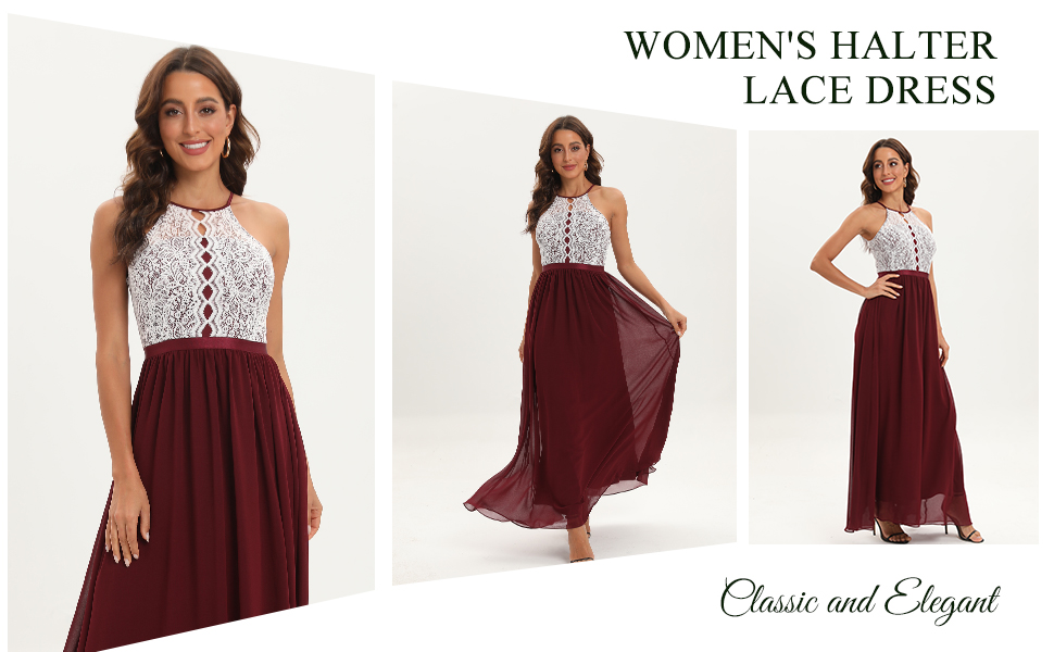 القماش: دانتيل زهور قابل للتمدد (94% ليلون، 6% ألياف لدنة) صدرية علوية ناعمة، جزء فستان طويل من الشيفون الساحر، ناعم جدًا ومريح.