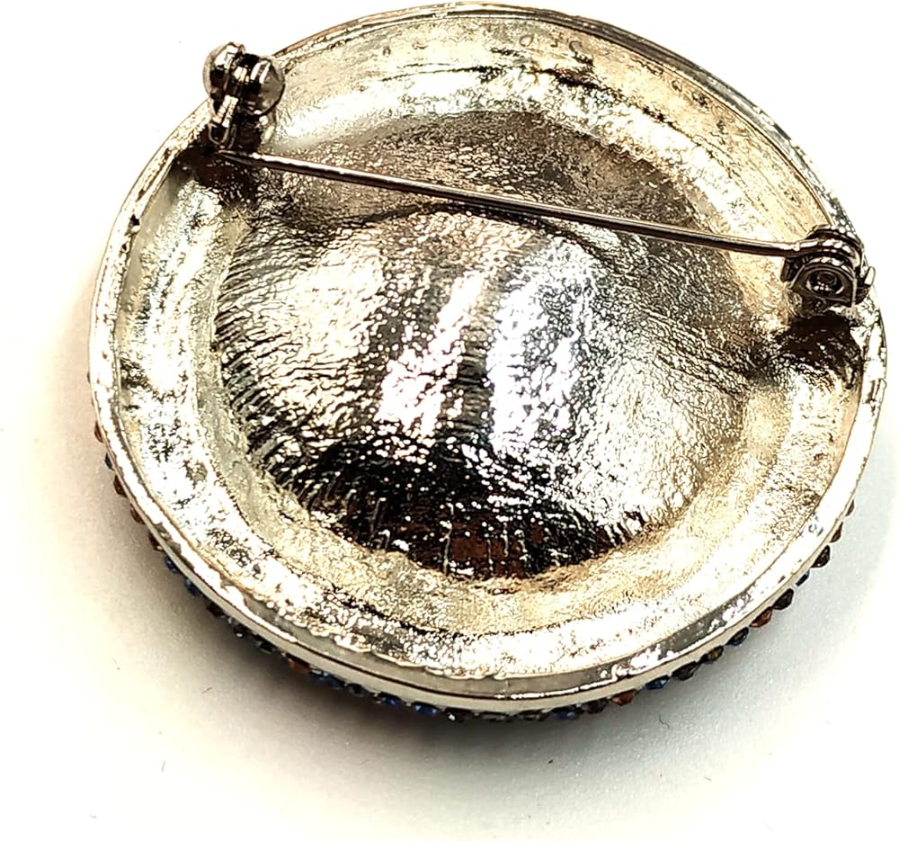 This shiny and glitter round cut stone brooch in silver tone plated ,faceted cut rainbow colorful round stone domed in the middle of brooch , six tinny AB crystal circlet surrounded this round stone , very pretty and stunning pin for your dress coat sweater etc on Special Occasions, Birthday, Valentine's Day, Mother's Day or Anniversary Gifts; Also Great for Jazzing up Casual or Business Wear with a Sophisticated Splash of Retro Bling