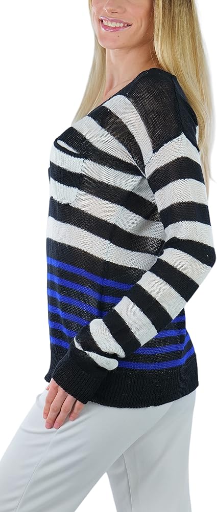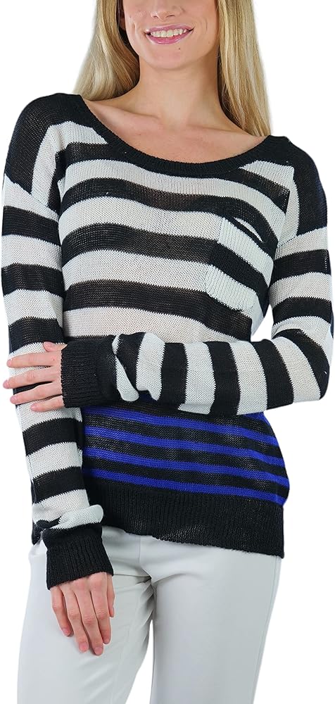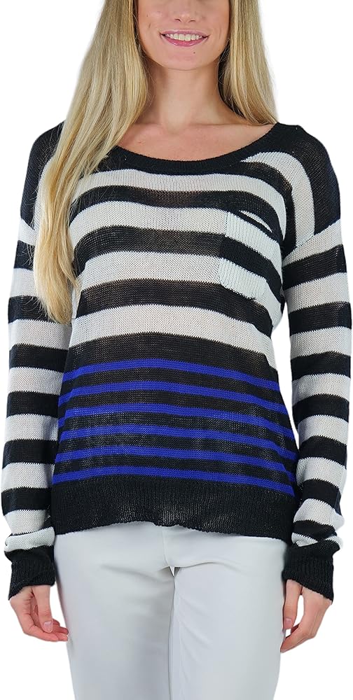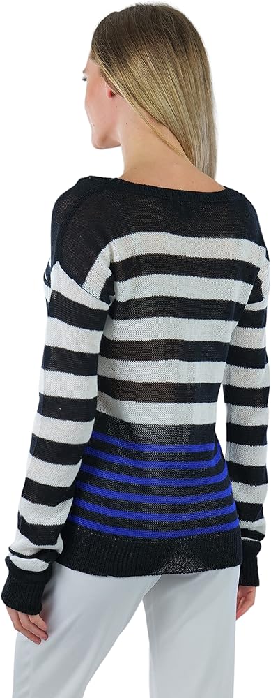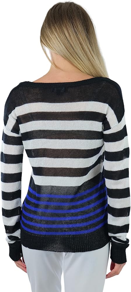 اللونسترة ملونة برقبة دائرية - أسود/أبيض/ملكي