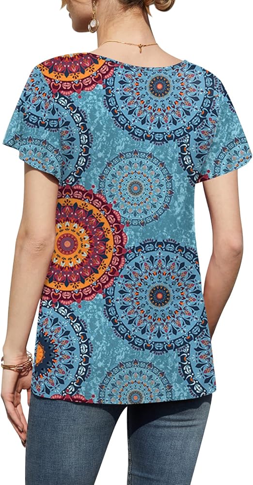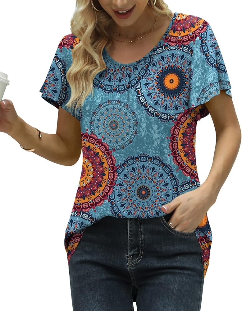 ❤ 【المميزات】 كم قصير مكشكش، رقبة دائرية مكشكشة، ومقاس فضفاض. تم تصميم هذا التونيك الصيفي ليكون أنيقًا ومريحًا. تأتي في مجموعة متنوعة من الألوان الصلبة الأساسية وطبعات الزهور اللطيفة، مما يجعل من السهل ملاءمتها مع الملابس المختلفة.