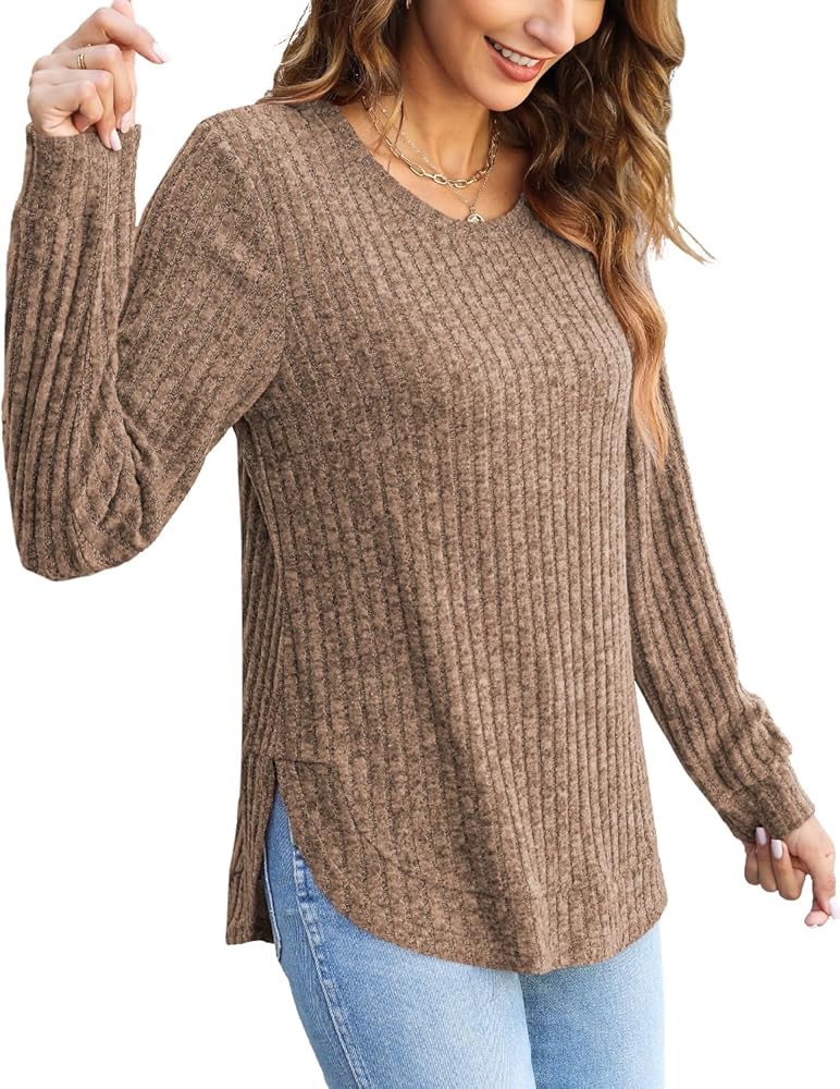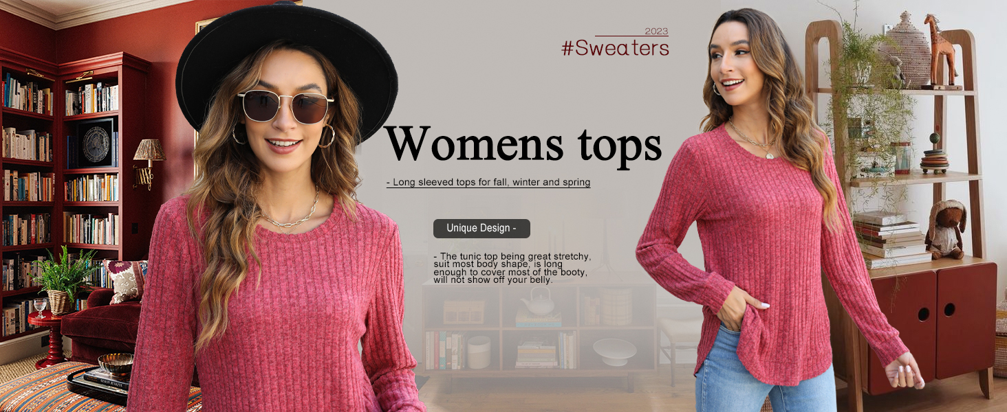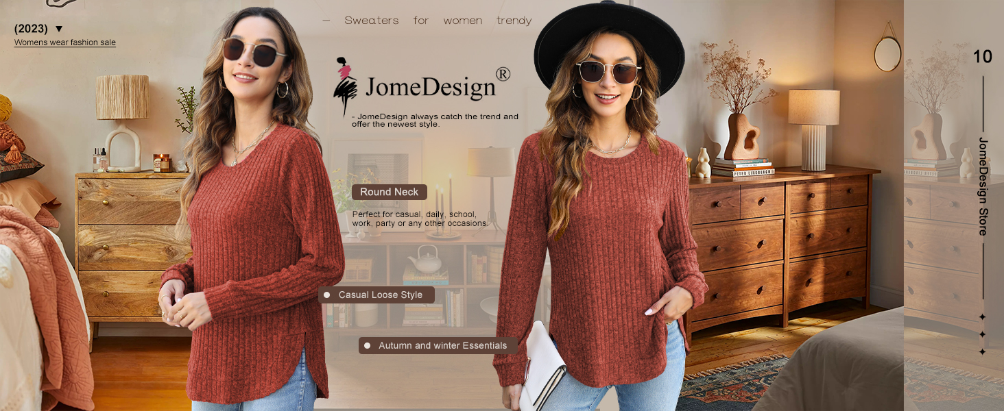 JomeDesign Womens Tops Fall Fashion 2023 Long Sleeve Shirts Round Neck Sweatshirt Lightweight Sweaters