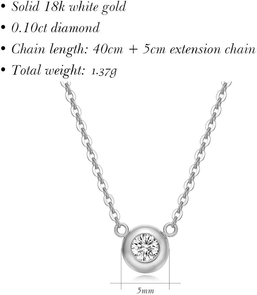 • ▶ HIGH QUALITY - This beautiful round brilliant-cut diamond solitaire necklace is a dainty yet dazzling ornament for the diamond lover. Crafted in 18k white gold, this diamond necklace will make any outfit or occasion truly brilliant.