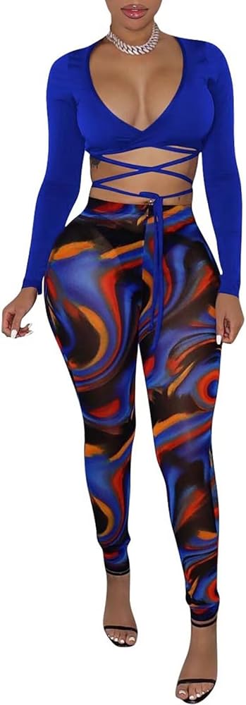 بدلة رياضية نسائية مثيرة مكونة من قطعتين من Acelyn، ملابس علوية قصيرة ذات خصر عالي، شفافة من خلال السراويل الضيقة، ملابس النادي، أزرق L