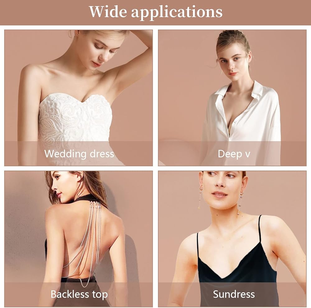 【مناسبة استخدام على نطاق واسع】حمالة صدر غير مرئية لأي نمط مثير، قمصان علوية بدون ظهر، بدلات عميقة على شكل حرف V، فساتين سهرة بدون ظهر/بدون حمالات، فساتين زفاف، فساتين منخفضة القطع، فساتين الكوكتيل، فساتين الحفلات، إلخ. لا تتردد في إظهار ملابسك سحر أنثوي.