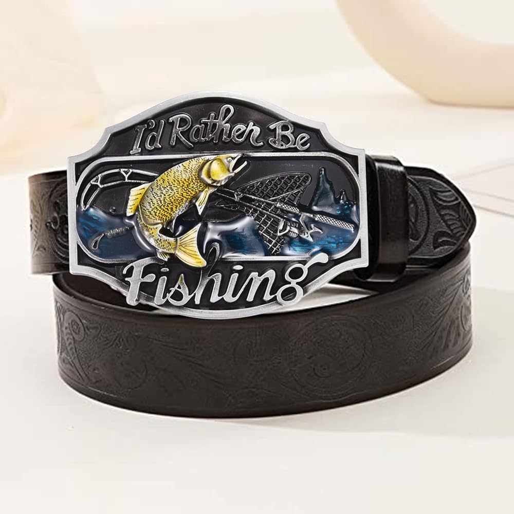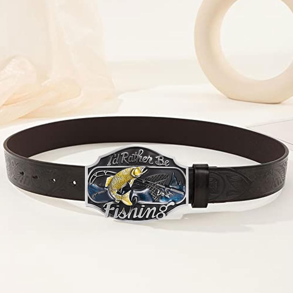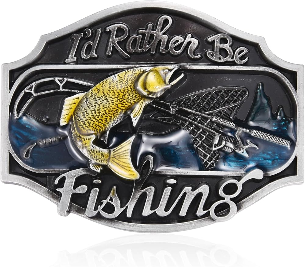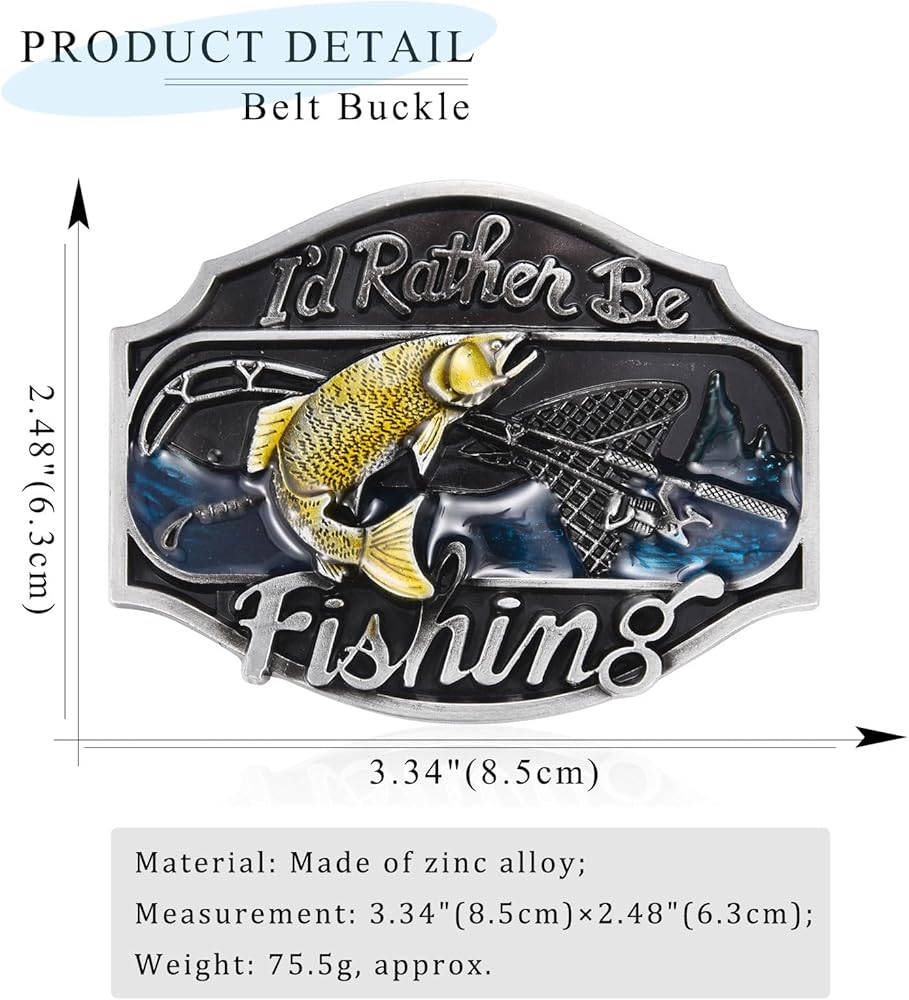 LYTOPTOP Western Belt Buckles for Men Women│I'd Rather Be Fishing Belt Buckle Christmas Halloween Belt Buckle Gift