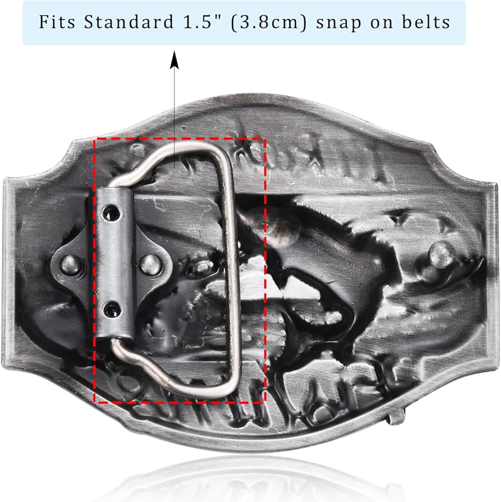 • SIZE: This kind of belt buckle measures approximately 3.34 x 2.48inch (8.5 x 6.3cm); Weight: 75.5g.