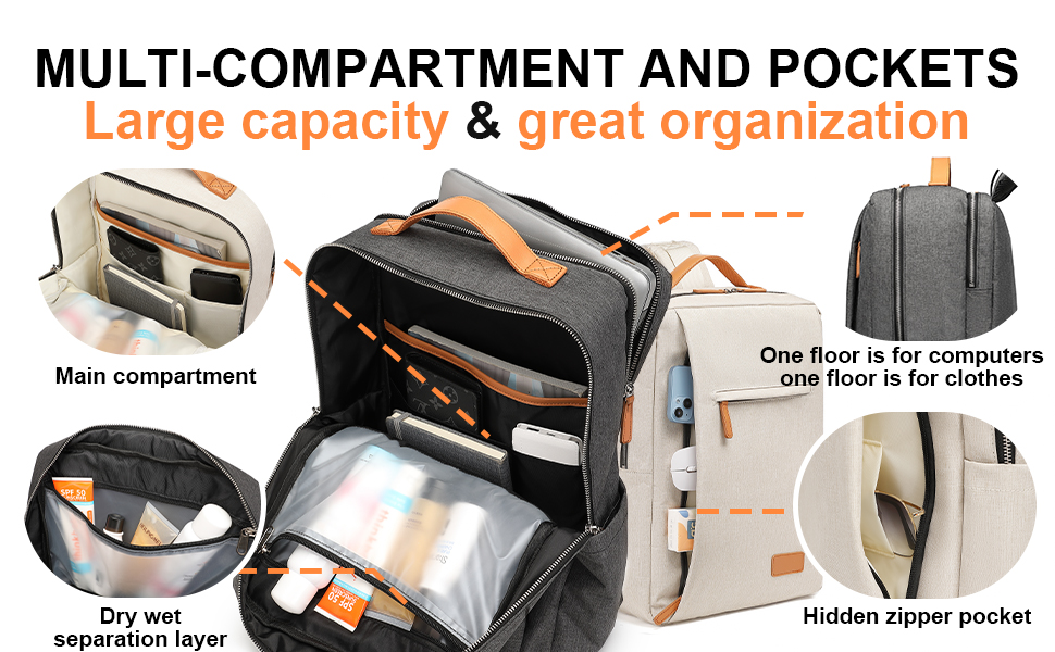 𝗪𝗘𝗟𝗟 𝗢𝗥𝗚𝗔𝗡𝗜𝗭𝗘𝗗 & 𝗗𝗥𝗬 𝗔𝗡𝗗 𝗪𝗘𝗧 𝗦𝗘𝗣𝗔𝗥𝗔𝗧 𝗜𝗢𝗡 - للتعامل مع العناصر المختلفة، تتميز حقيبة الظهر المخصصة للأعمال هذه بحجرتين رئيسيتين واسعتين وجيب جانبي مرن والعديد من الجيوب المخفية لتصنيف التخزين ومنع السرقة. يضمن تصميم الفصل الجاف والرطب الحفاظ على أغراضك نظيفة ومنظمة.