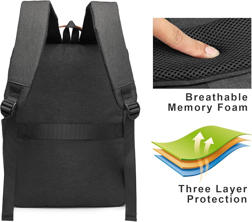 حقيبة الظهر للكمبيوتر المحمول هذه مصنوعة من البوليستر عالي الدنير وهي متينة للغاية، مقاوم للماء والمسيل للدموع والخدش. تم تصميم أحزمة الكتف السميكة فائقة التهوية بشكل مريح لتقليل الحمل على كتفيك وإعطائك دعمًا للظهر.