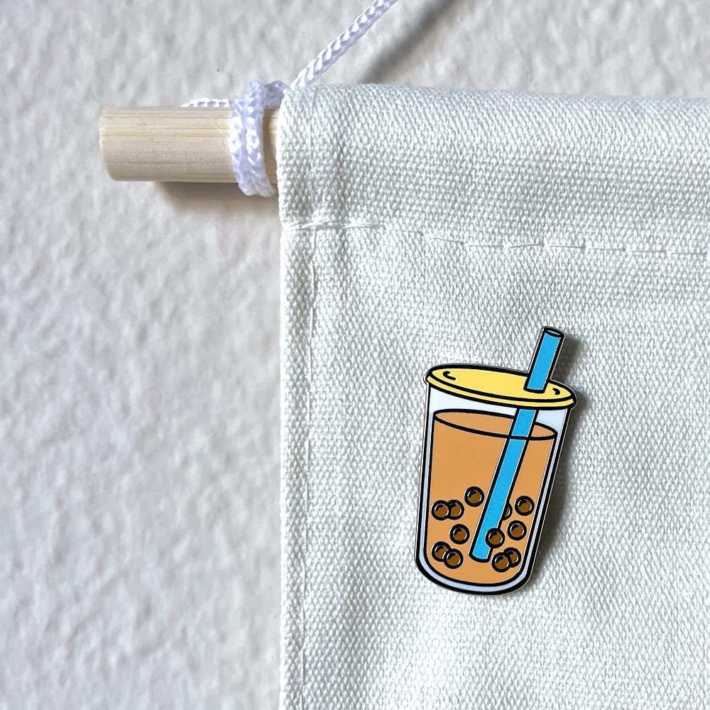 بالنسبة للمشروب الذي لا يحتاج إلى مقدمات، يسعدنا تقديم دبوس الشاي التايلاندي بوبا/ المينا الفقاعي! يتميز هذا الدبوس بمشروب الشاي التايلاندي اللذيذ مع كرات التابيوكا / اللؤلؤ. دبوس بوبا الفريد هذا لا غنى عنه لجميع عشاق الطعام! هذا الدبوس المطلي بالمينا هو الإكسسوار المثالي لقبعتك أو جاكيتك أو شنطتك، وطريقة رائعة لإظهار حبك لبوبا.