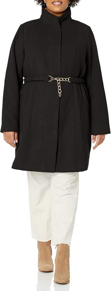 Top off your style rotation with a practical statement maker and show off the Shiloh Jacket! Flaunting high collared neckline, full length sleeves and functional front pockets, this piece amps up your style with ease! Key Features Include: - High collared neckline - Full length sleeves - Removable elasticated belt with gold chain front closure - Front zip and snap button closure - Functional front pockets - Fit & flare silhouette - Soft fabrication - Above knee length hemline - Fully lined Style over a black maxi dress and strappy heels.