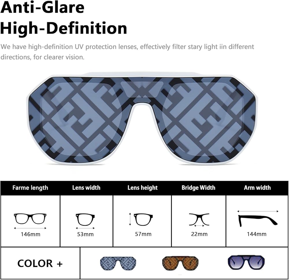 مزايا التصميم: عدسات كبيرة الحجم ذات حواف كاملة وخطوط دائرية تعدل شكل الوجه بالكامل. نظارات شمسية كلاسيكية وأنيقة تعكس ذوقك بشكل مثالي.