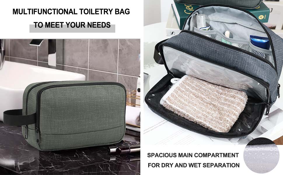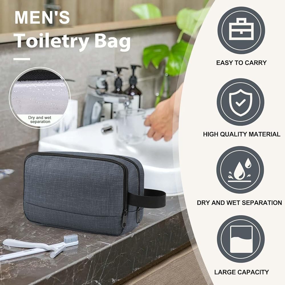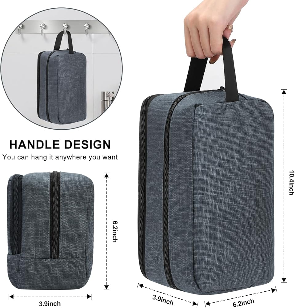 【حجم حقيبة أدوات الحلاقة】بأبعاد 10.4 طول × 3.9 عرض × 6.2 ارتفاع، توفر حقيبة أدوات الزينة الرجالية الكبيرة هذه سعة كبيرة. يستوعب بسهولة فرش الأسنان ومعجون الأسنان والشامبو والمناشف وشفرات الحلاقة وكريم الحلاقة والعديد من مستحضرات التجميل الأخرى، في حين أن الجيب الخارجي المقاوم للماء مثالي لفصل العناصر الرطبة والجافة، مثل فرش الأسنان والمناشف، مما يجعله مثاليًا لأي رحلة.