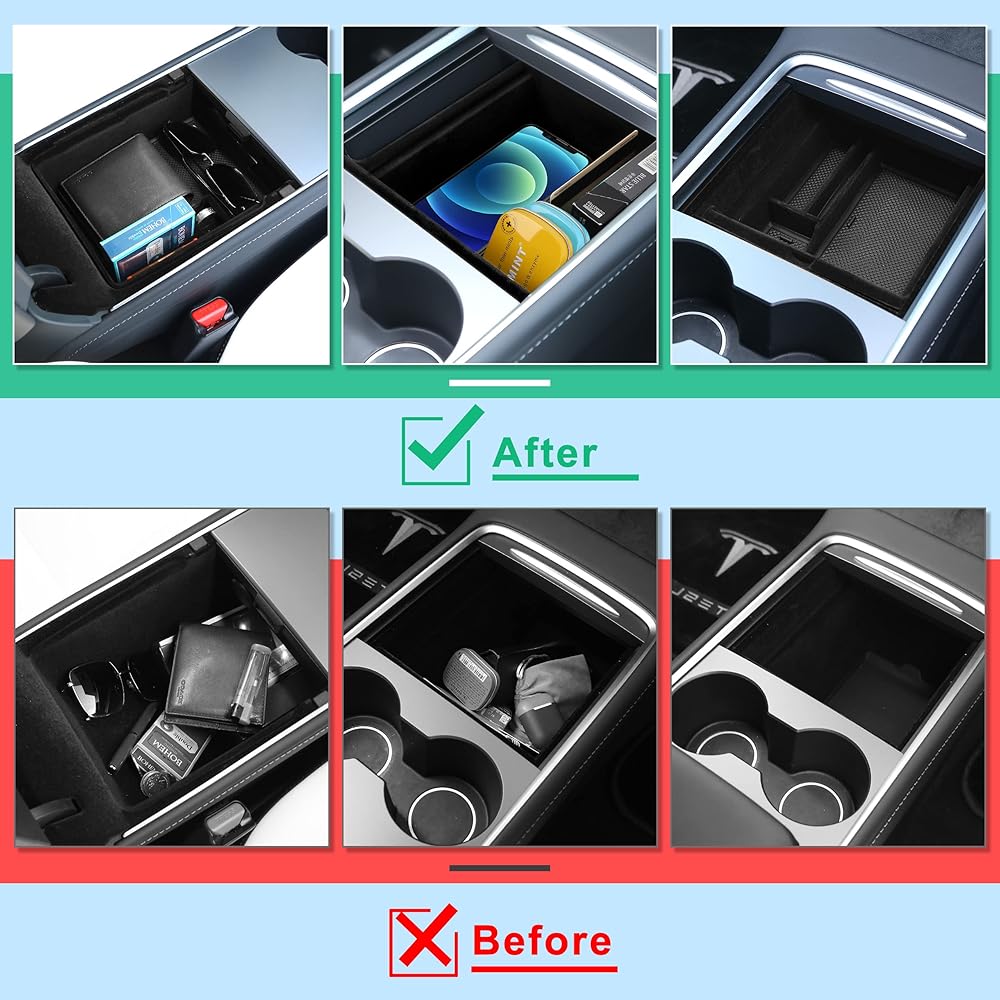 【قل وداعًا لوحدة التحكم المركزية الفوضوية】 صينية وحدة التحكم المركزية XINTUO المتوافقة مع الطراز 3/Y مصنوعة بشكل أعمق، لذا فهي تناسب الهواتف الذكية والنظارات الشمسية والمحفظة والمفاتيح وسماعات الأذن وبطاقة الهوية والسجائر وقرص USB والأقلام والعملات المعدنية وما إلى ذلك. يمكنك الحصول على رؤية واضحة وإمكانية الوصول إلى العناصر الصغيرة لأن 4 صناديق فرعية ذات سعات مختلفة يمكن أن تحافظ على نظافة ومنظمة بشكل جيد.