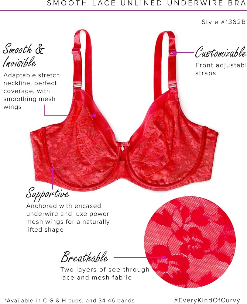 Experience love at first sight with romantic floral lace you can wear every day. The same fit you know & love from our Sheer Mesh Unlined Underwire Bra with a soft No Show Lace. Semi sheer cup opacity due to the floral design, providing more modest coverage yet still lightweight and breathable. No padding, no seams, all-you! Let your natural bust shape shine, these Full Coverage cups also have a soft stretch mesh lining on top of cups to contour to your bust shape. End strap slipping with our new front strap adjustment to easily customize your fit with fully adjustable straps. Your new go-to full coverage unlined bra with soft romantic breathable lace. Pair with our No Show Lace Panties for the perfect matching set.