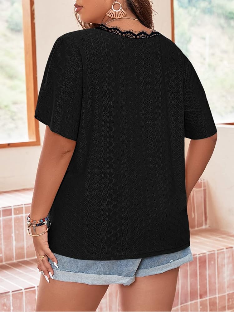 Plus Size Boho Blouses for Women Casual Short Sleeve T shirts Loose Fit Stretchy Tops