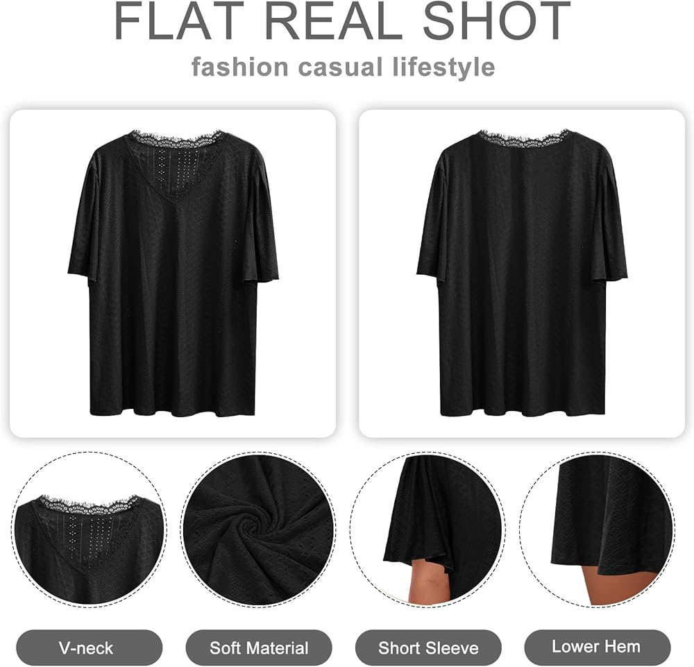 Material: The Plus Size Tshirts is Made of 94% Polyester, 6% Spandex, Super Soft and Stretch Cool Elegant Shirts for Women, Keeps You All Day Comfy in Summer.