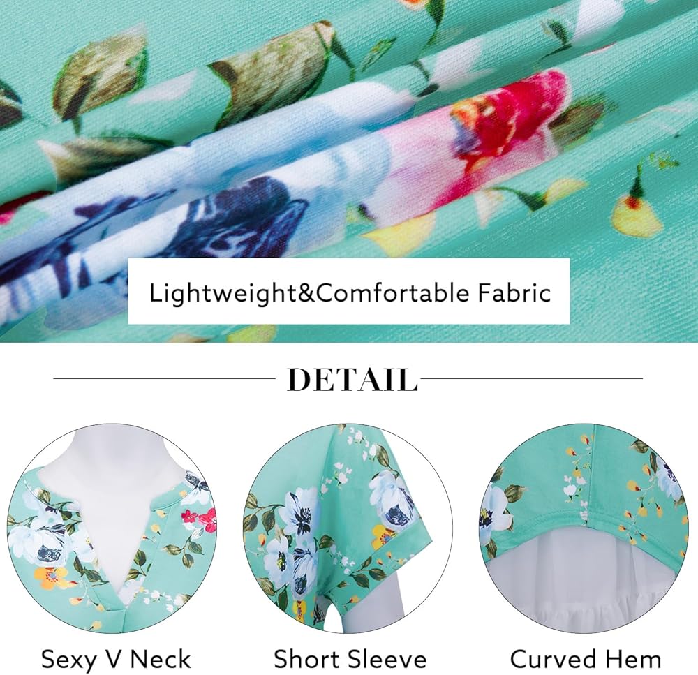 ❤ 【نسيج عالي الجودة】صلب: 95% رايون 5% سباندكس، زهور: 35% قطن، 60% بوليستر، 5% سباندكس. ناعم ومريح ومرن وخفيف الوزن وجيد التهوية. لا انكماش. يُغسل في الغسالة ويُجفف بسرعة مع القليل من الكي أو بدون كي.