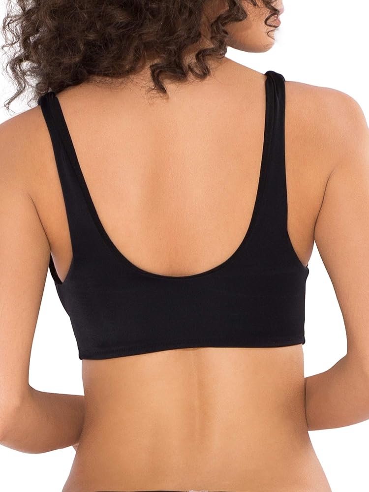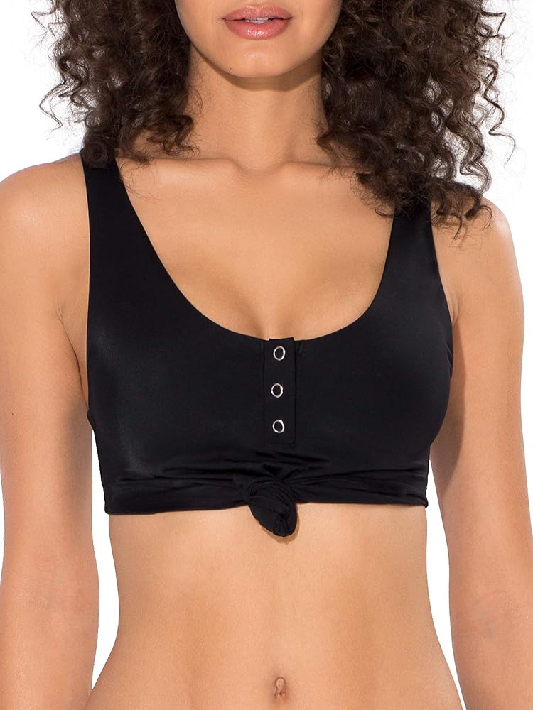A cute bikini with a little extra coverage and support does exist. The smartest knot front crop bikini top is perfectly on-trend with its button down and knot tie front. With smooth, stretch fabric, Wide tank style straps, this swimsuit helps keep you lifted and supported in the sun and sand. This crop top bikini pairs best with the smartest bikini bottoms.